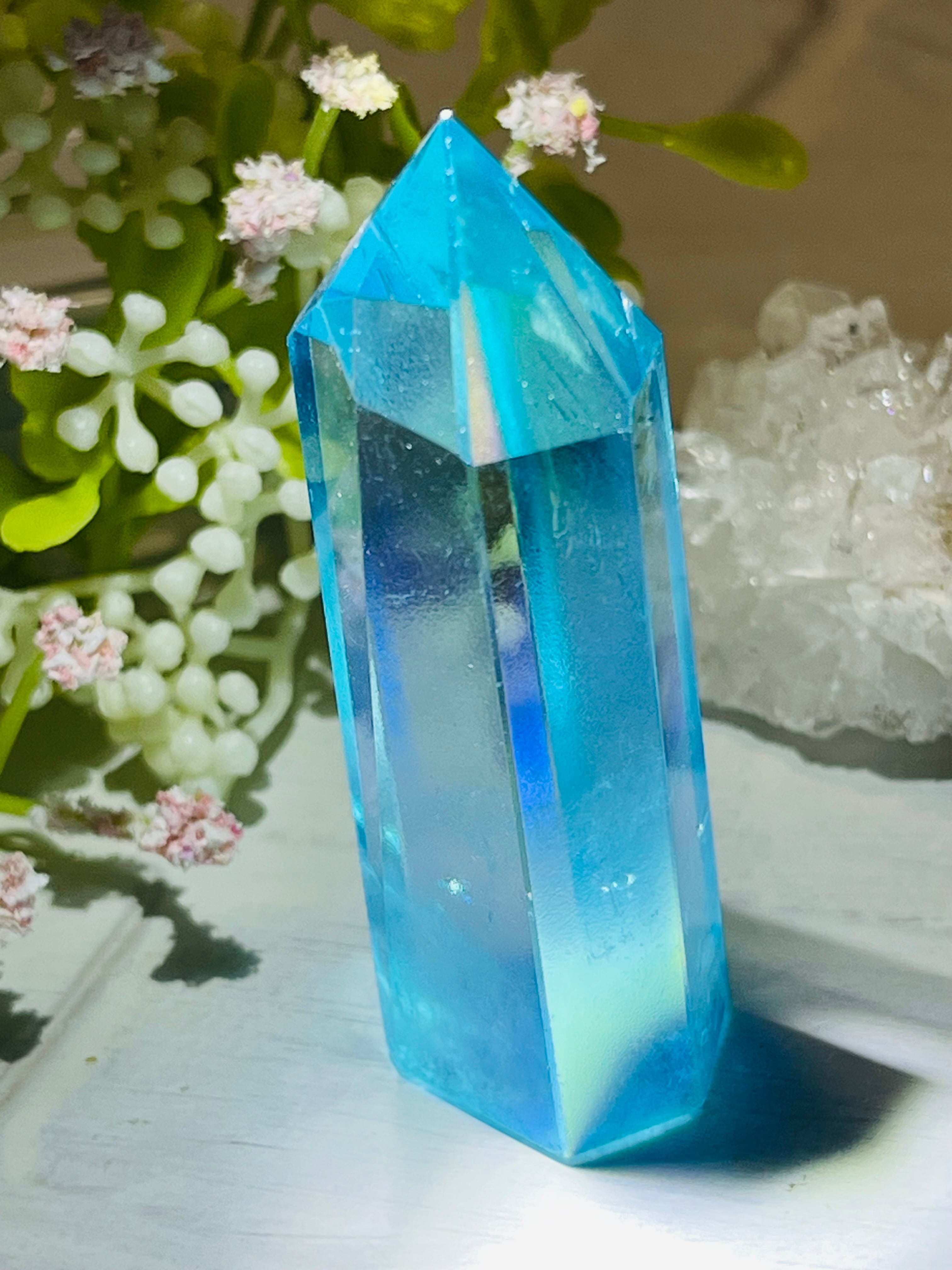 七色の夢໒꒱✨ ブルー オーラ 水晶 クリスタル ポイント 原石 ポリッシュ