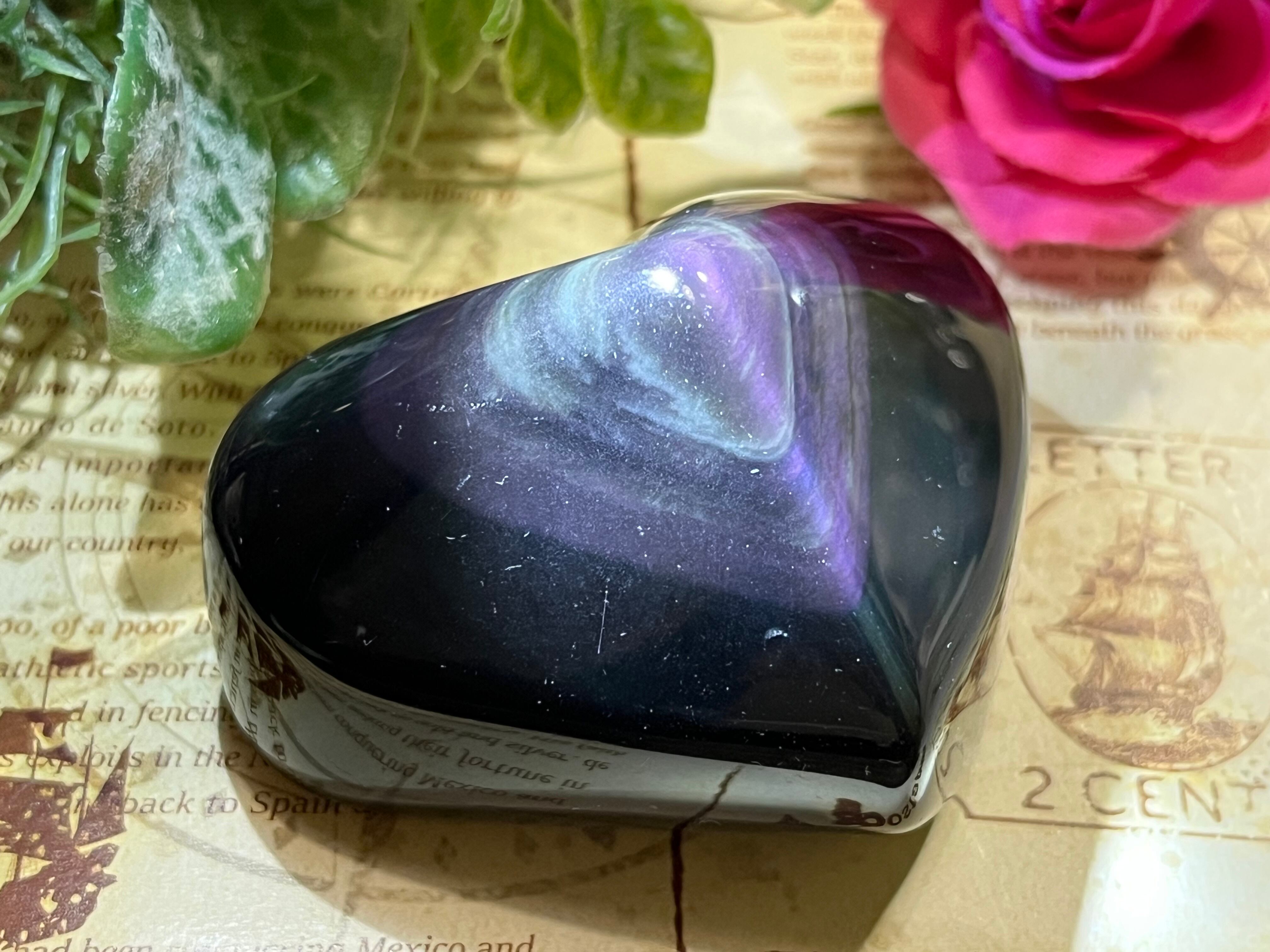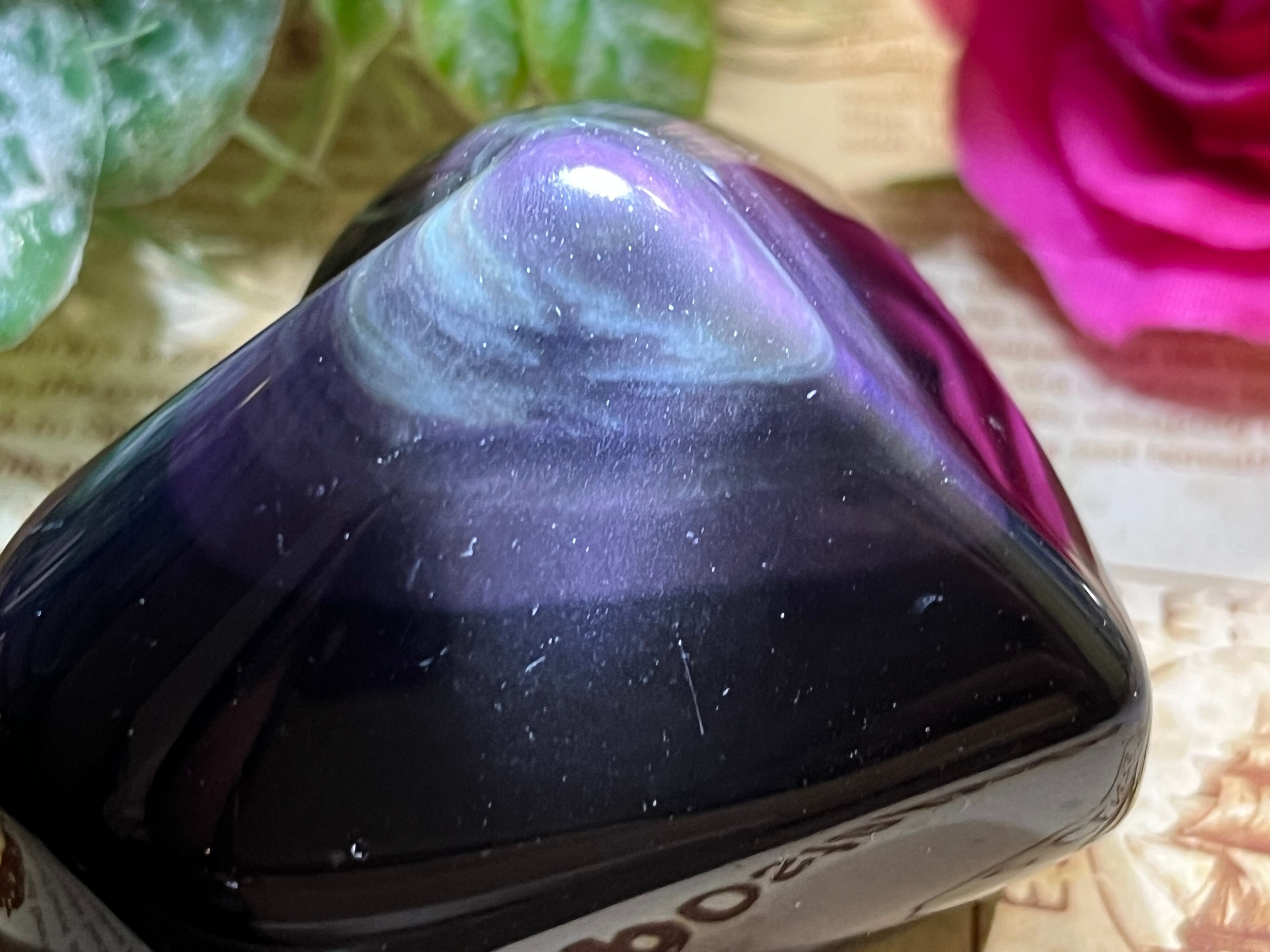 レインボーオブジディアンは緑色ベースが多いので、このような深い濃い紫色になるものはなかなか珍しいと思います。