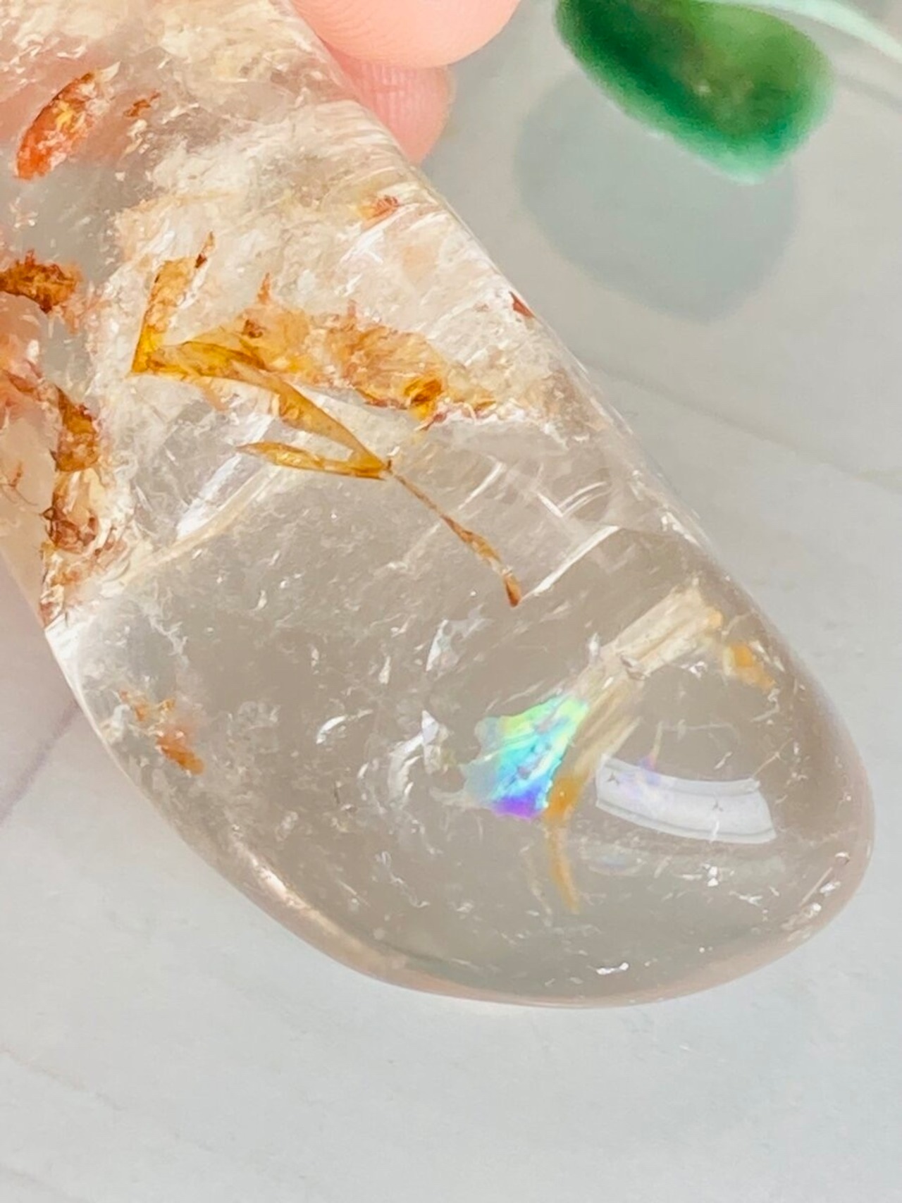 レインボー✨ ルチル内包 アンフィボールインクォーツ 原石 タンブル