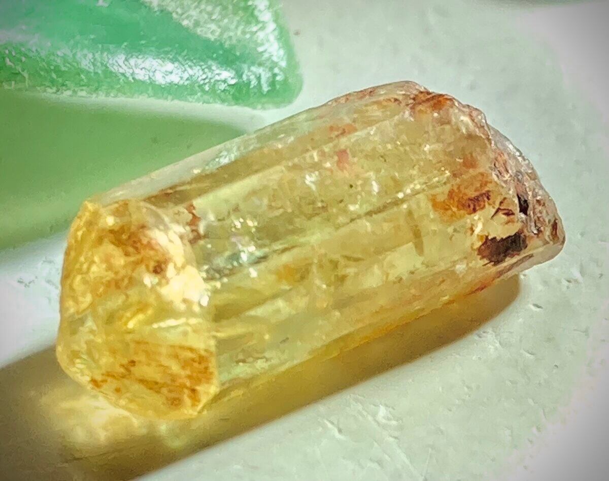 こちらはアパタイトの中でも貴重なイエローアパタイトのギラギラな虹入りミニラフストーンです(*´꒳`*)