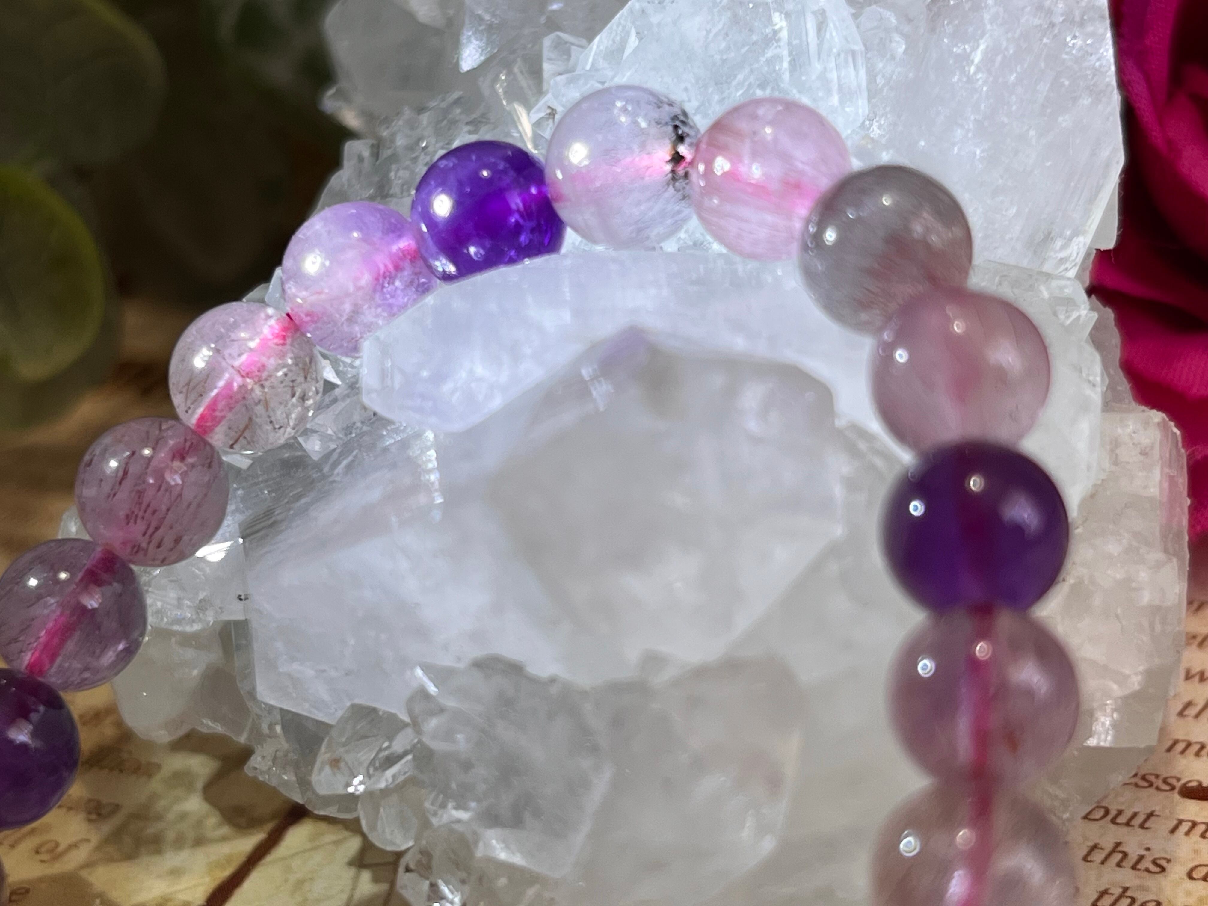スーパーセブン✨ 細石ブレスレット アメジスト スモーキー クリスタル 原石