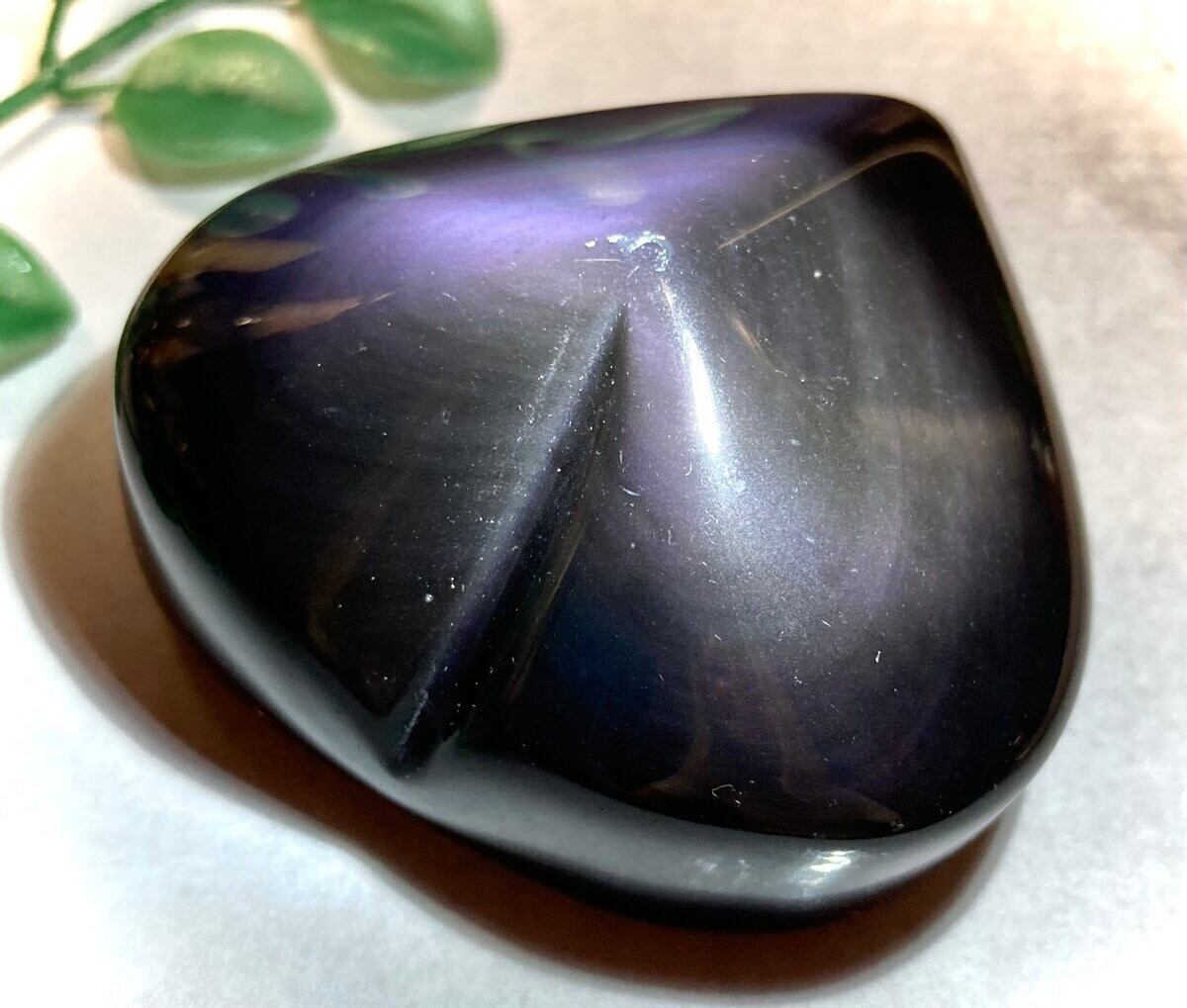 レインボーオブジディアンは緑色ベースが多いので、このような深い濃い紫色になるものはなかなか珍しいと思います。