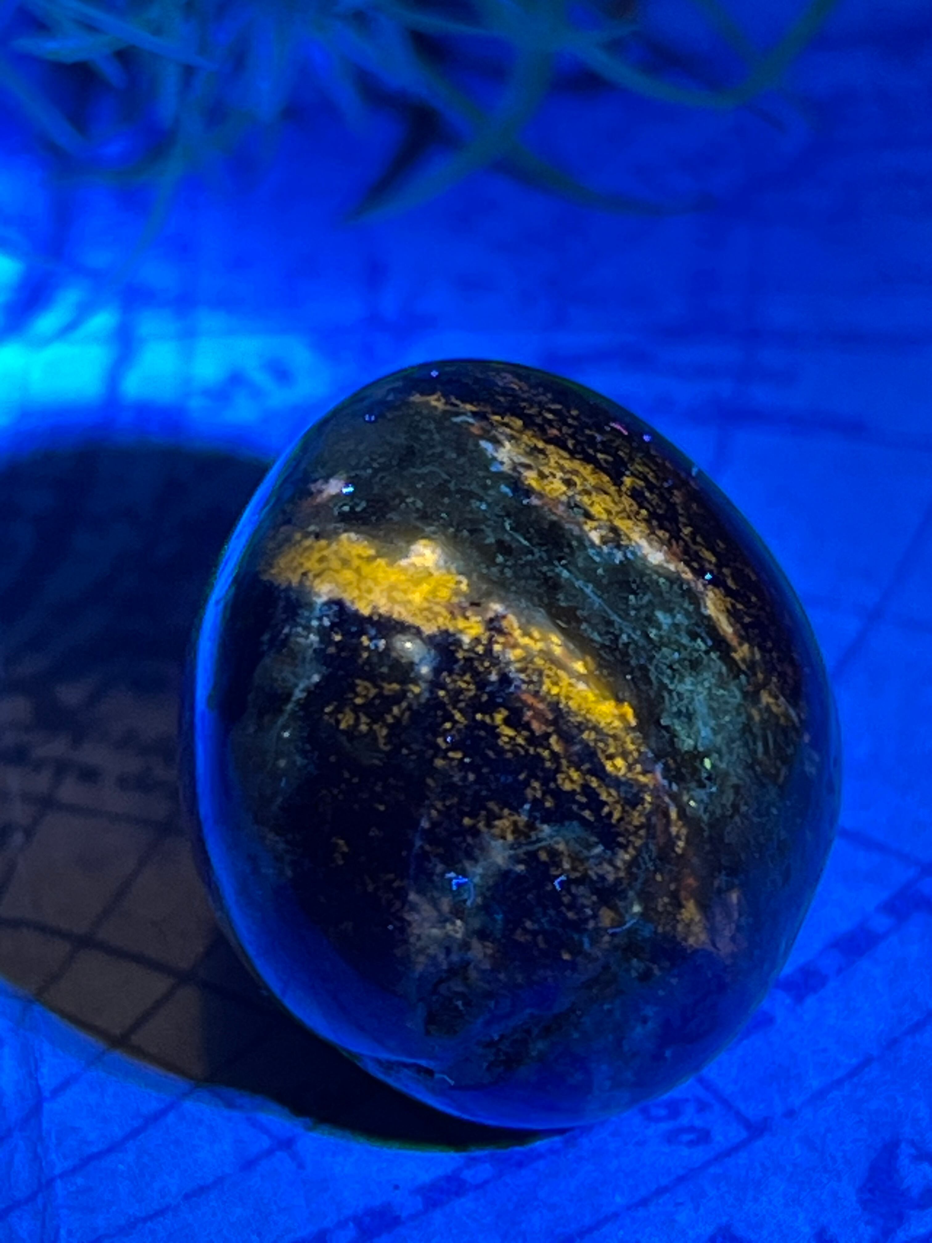 ブラックライトで蛍光するアフガニスタン産ラピスラズリのタンブルです✨