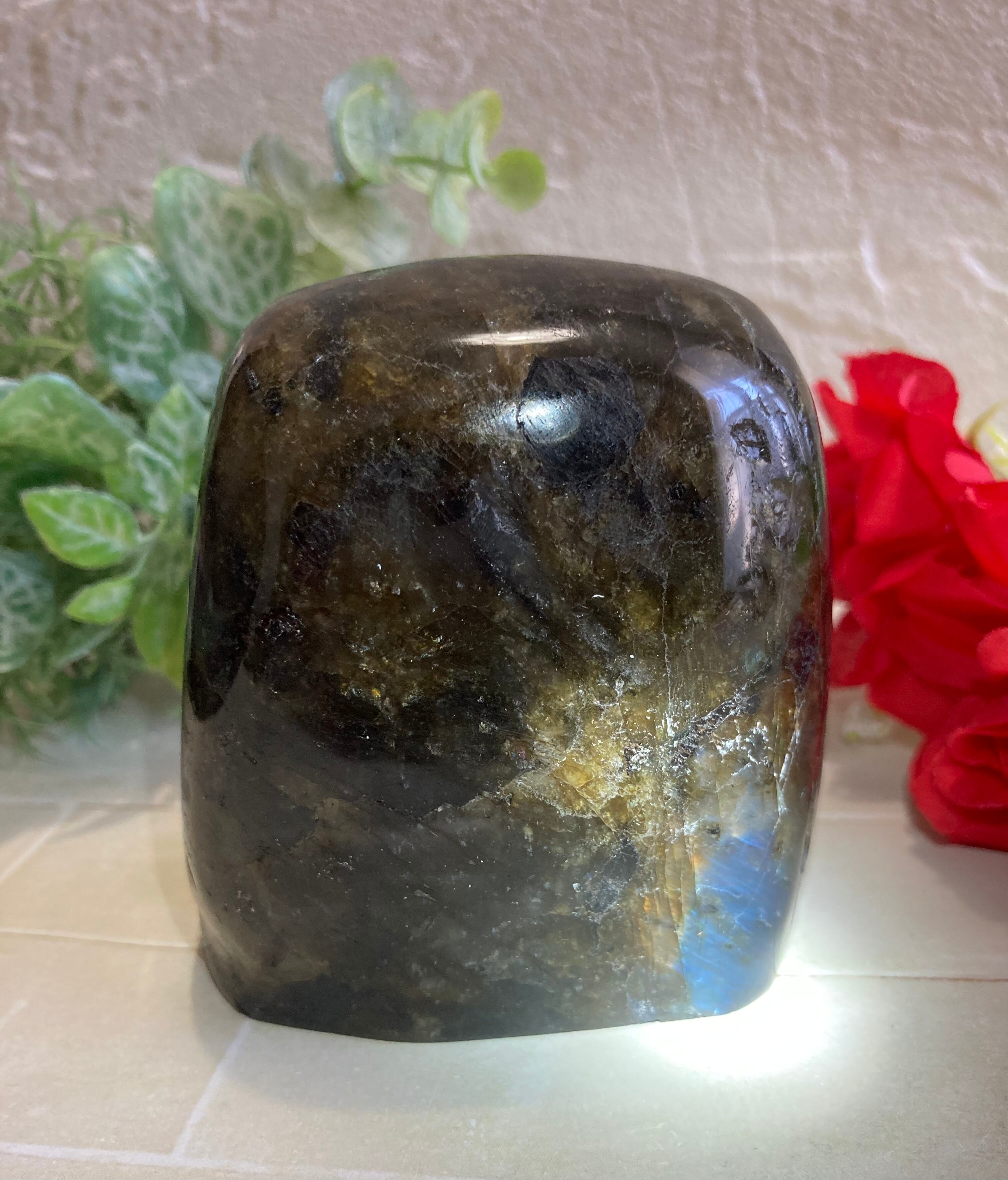 【宇宙エネルギー】虹 ラブラドライト レインボー 原石 ポリッシュ 置物