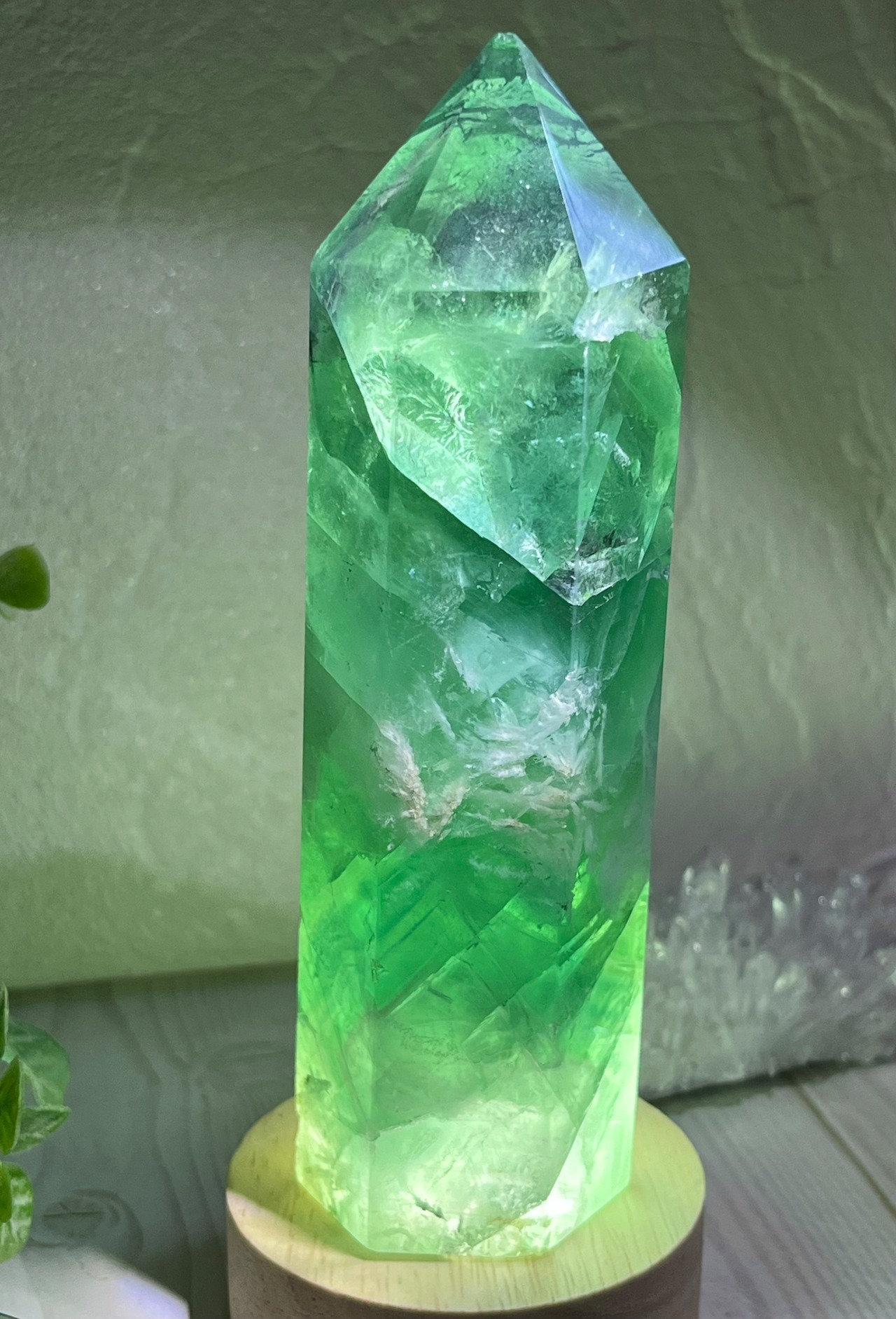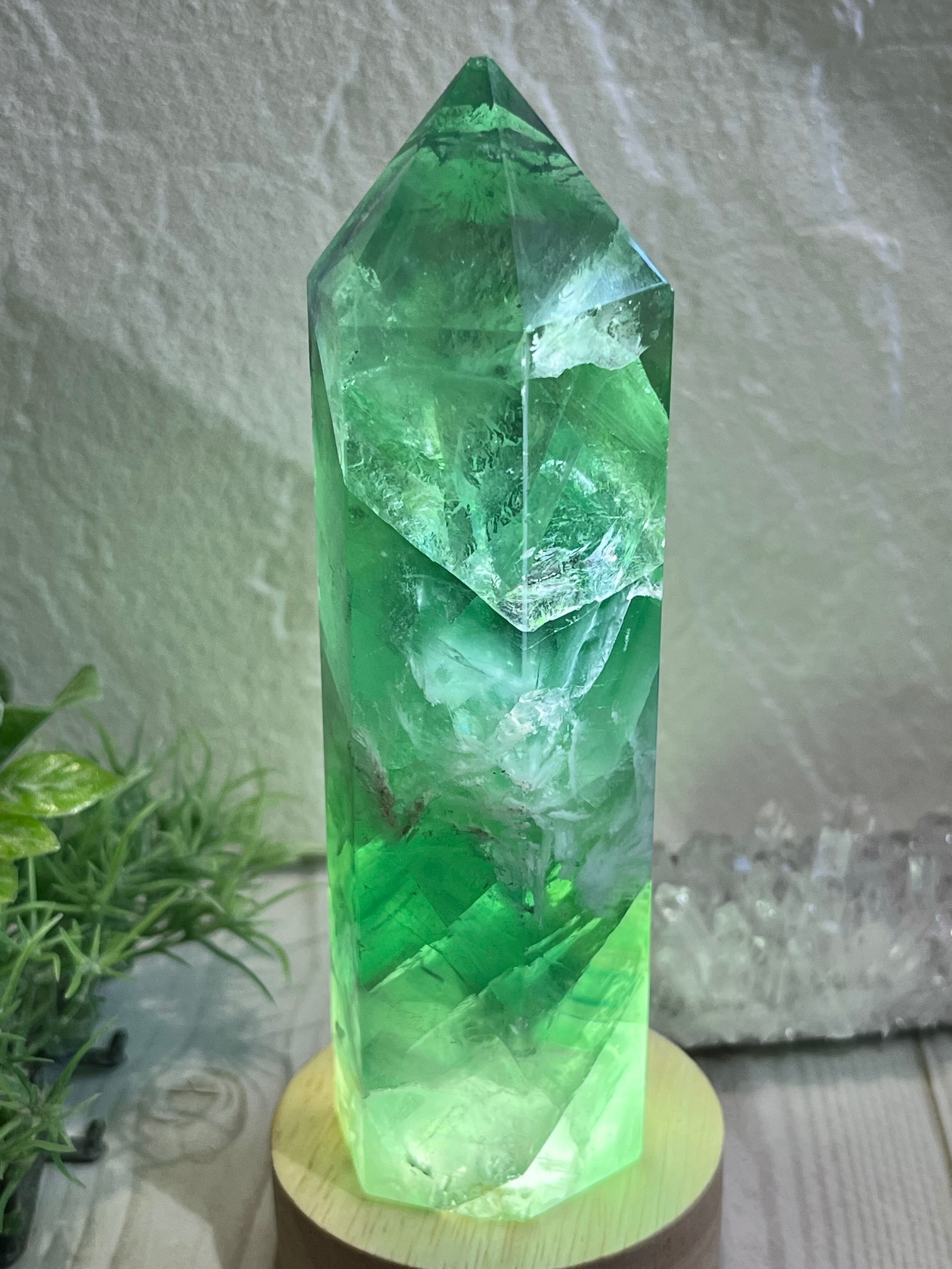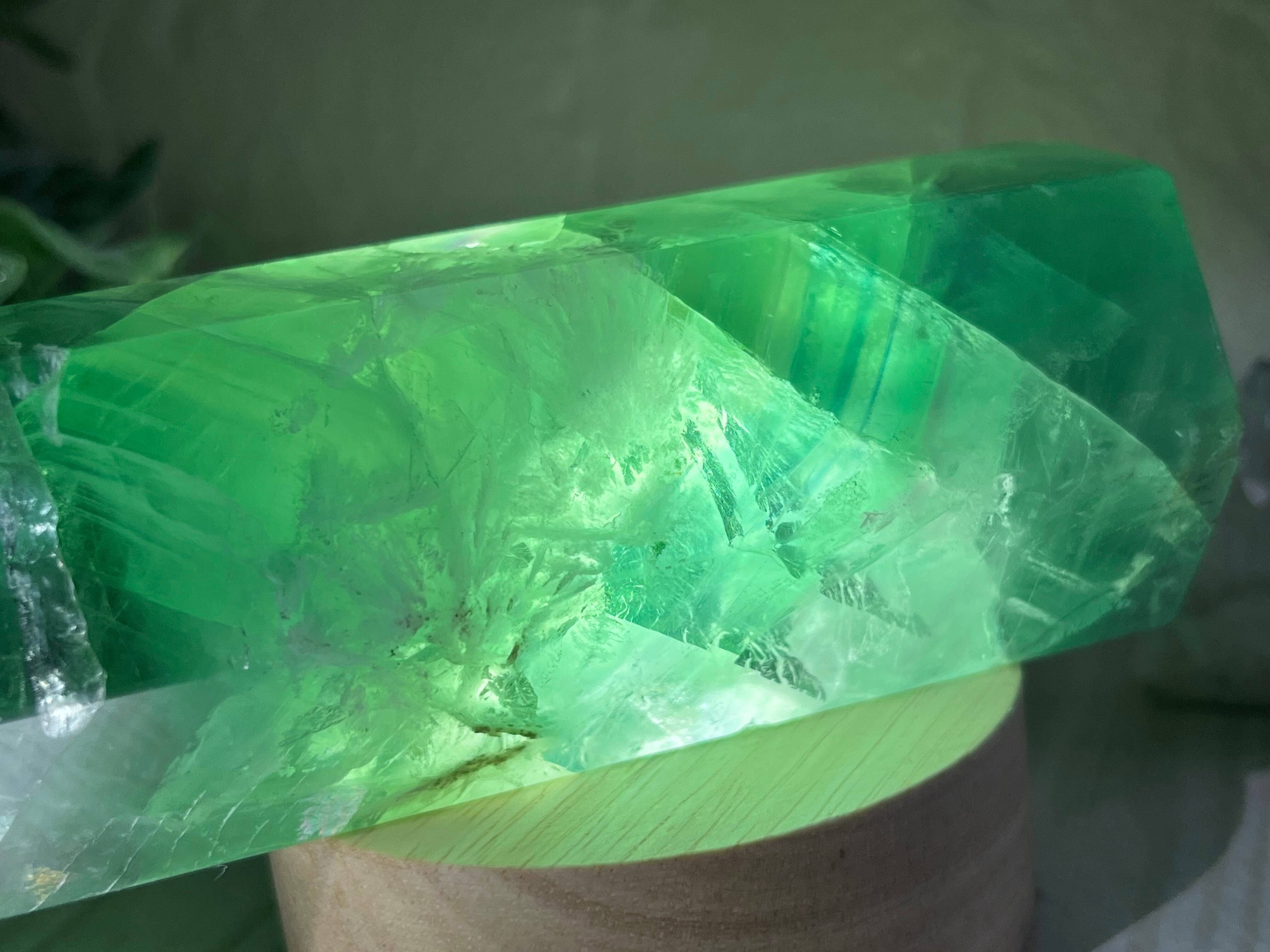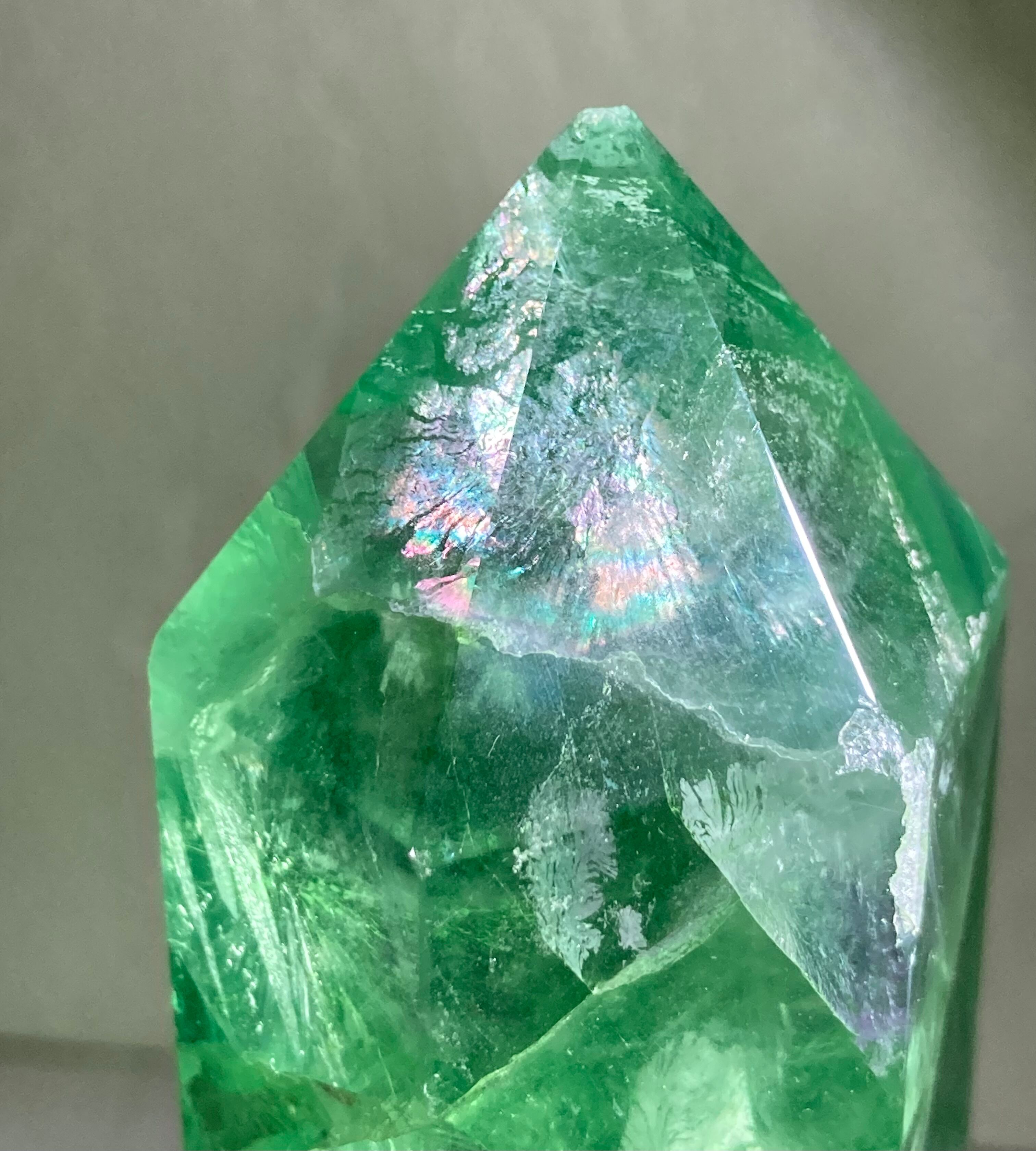 約13.5cmの特大サイズで、グリーンを基調に美しい色のフローライトの中に美しいインクルージョンの入ったフローライトポイントになります✨