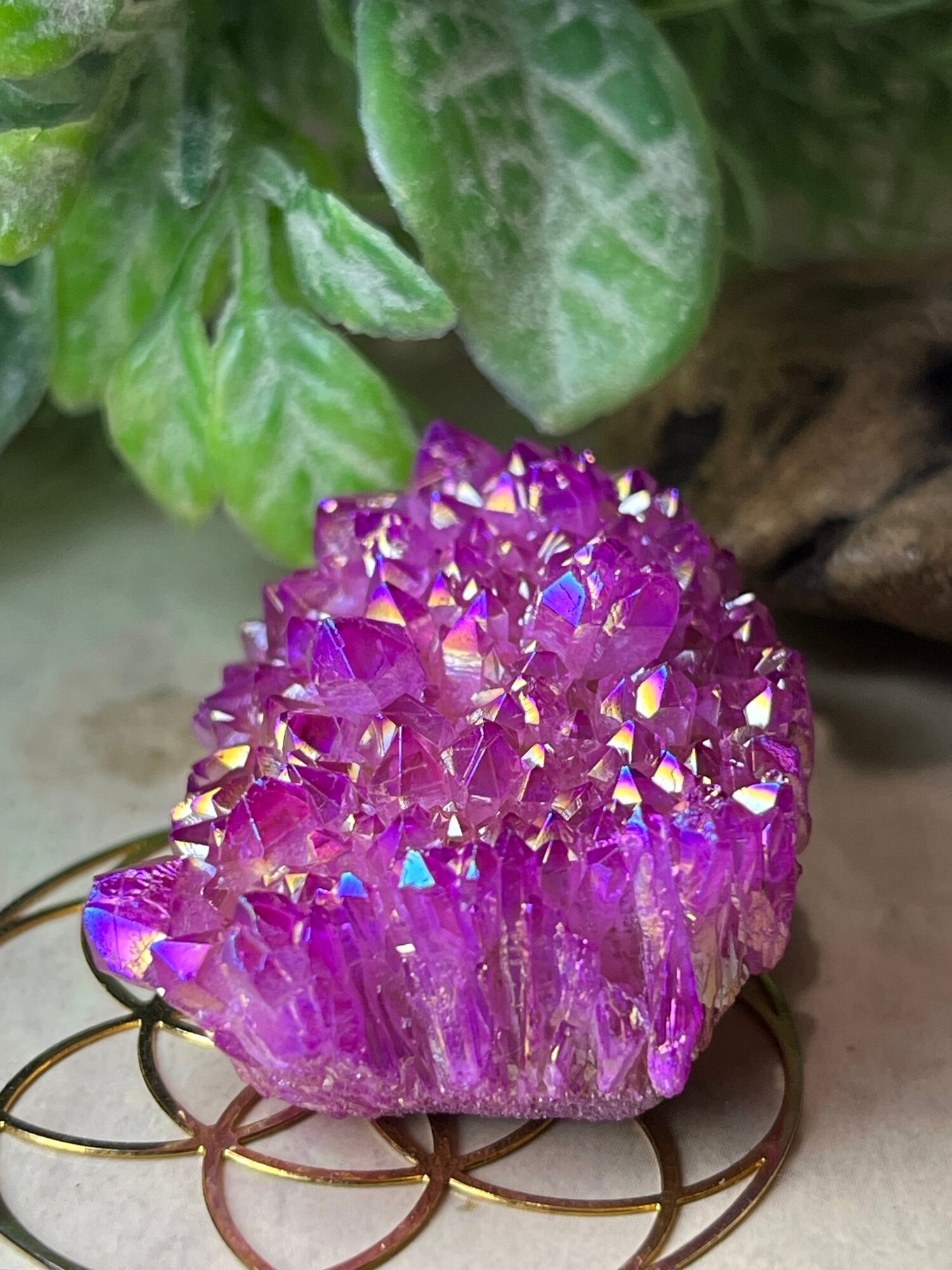 七色の夢໒꒱✨ マゼンタ オーラ水晶 原石 クラスター クリスタル