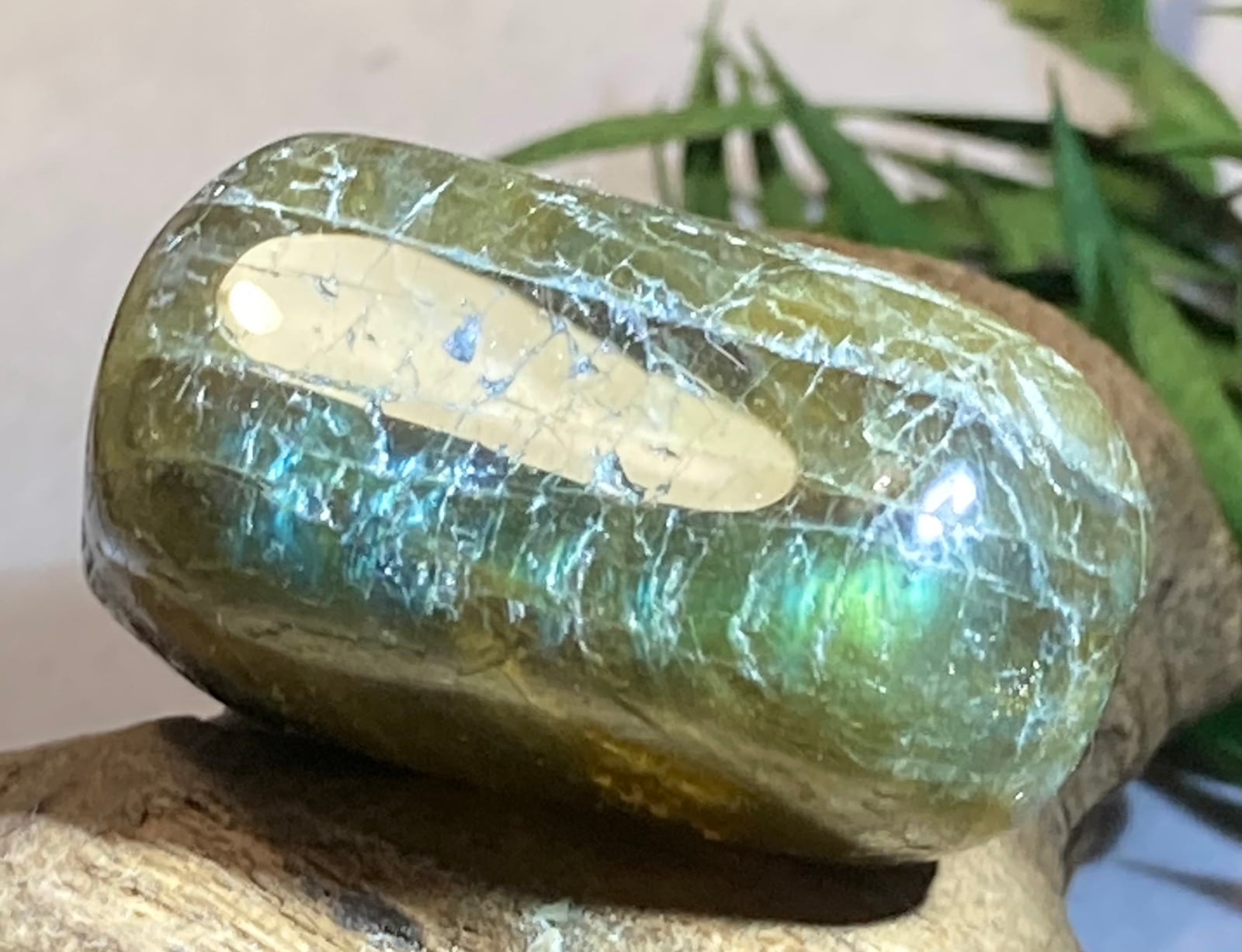 美しいオリーブ色のラブラドライトのタンブルです✨