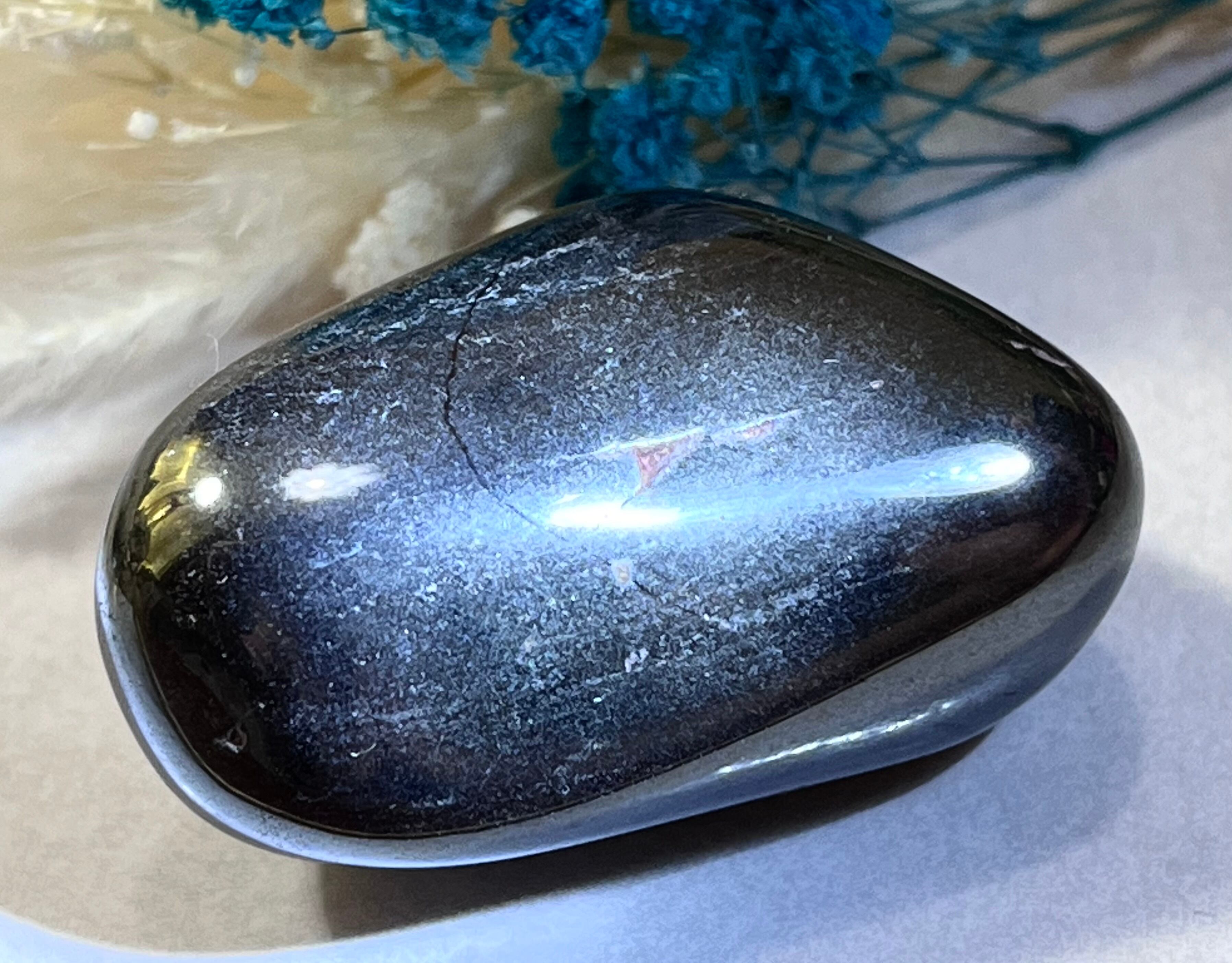 黒色の金属光沢に輝くヘマタイトのタンブルです- ̗̀꒰ঌ໒꒱ ̖́-