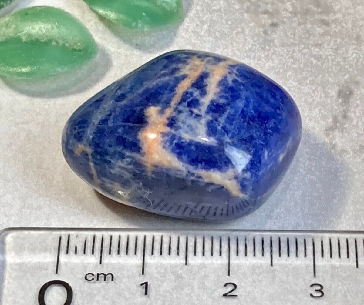 深い海の底を思わせるブルーと夕陽のようなオレンジのコントラストがとても美しい、サンセットソーダライトのタンブルです。✨