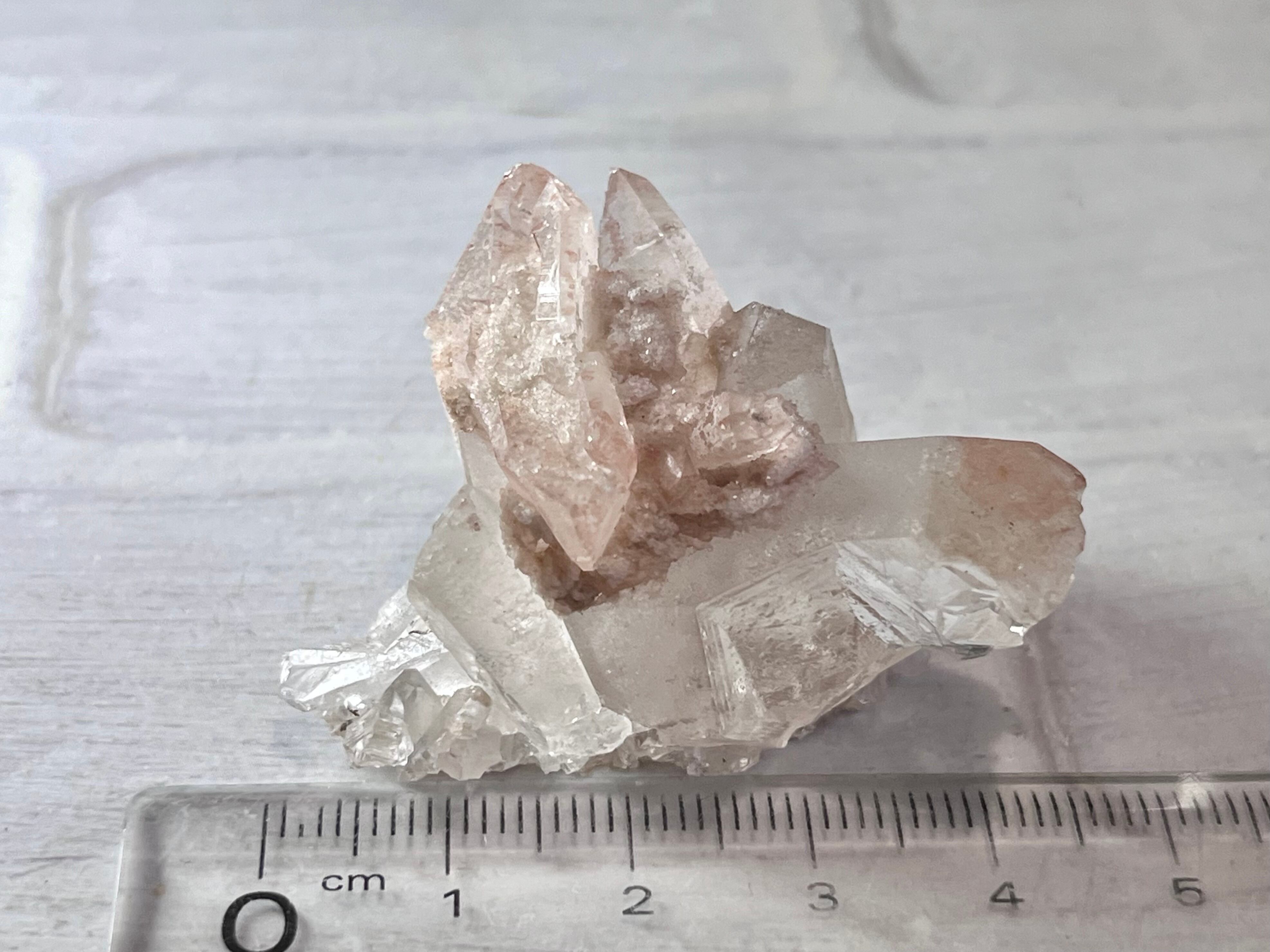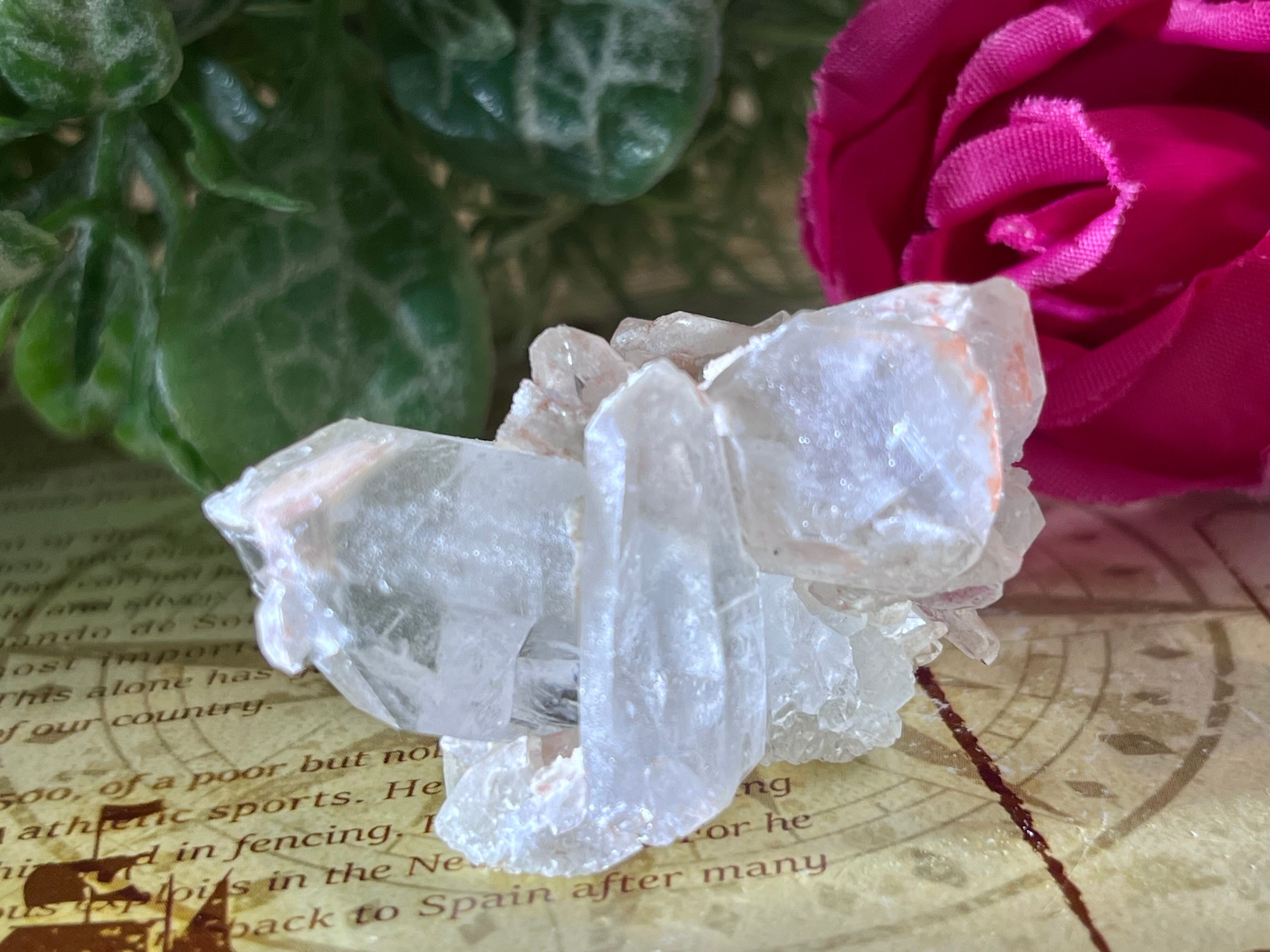 ミナスジェライス産のヘマタイトが外側に付着した赤みがかったレッドヘマタイトクォーツのクラスターです✨