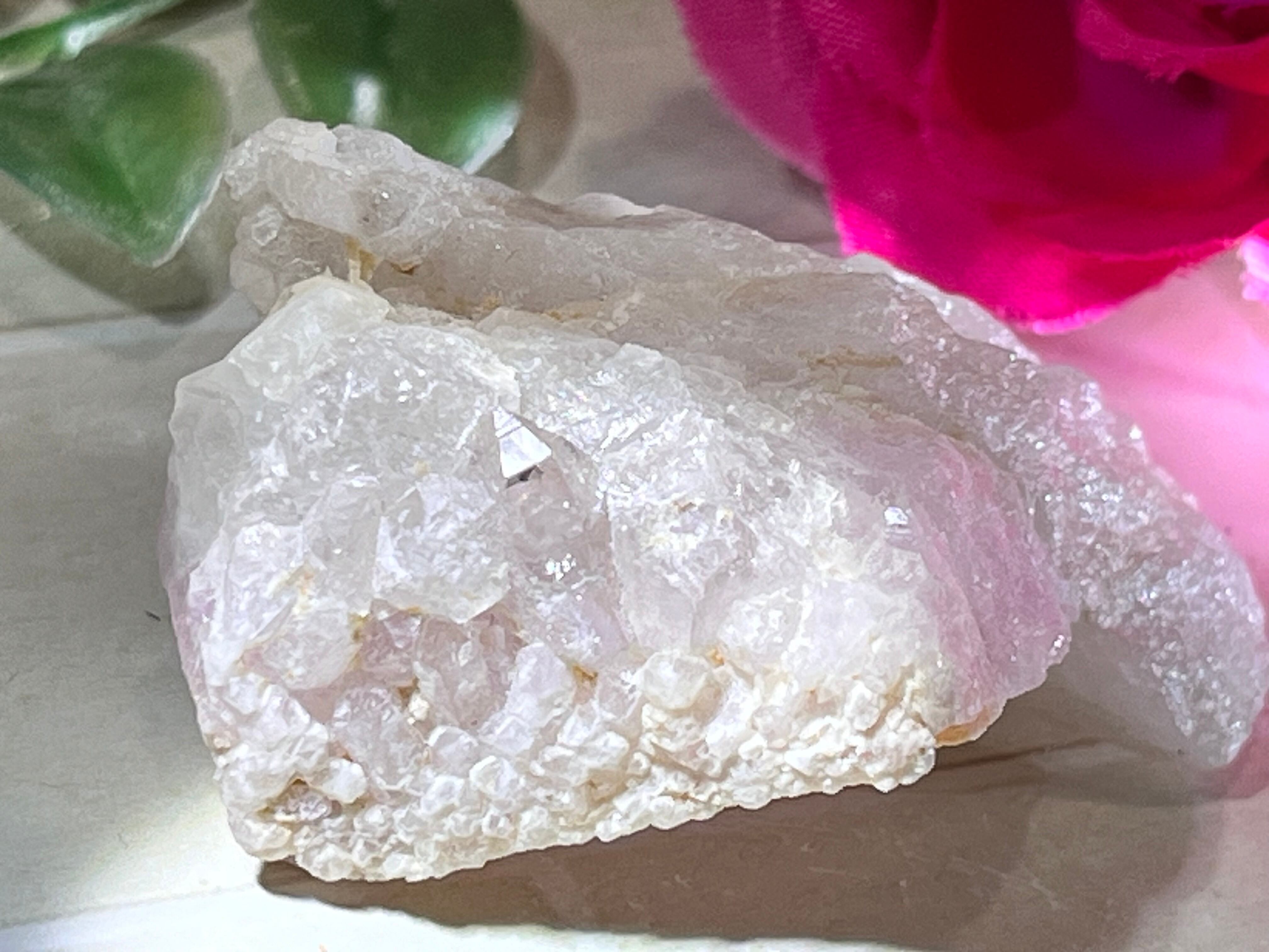 こちらはなかなかお目にかかれないローズクォーツの結晶…お色は薄いですがポイントもしっかりあります。