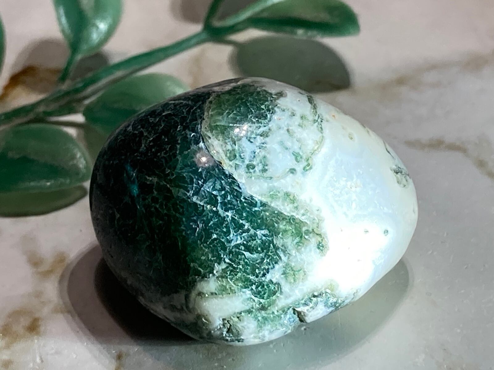 名前の通り樹を閉じ込めたような様相で落ち着いた雰囲気を醸し出しているインド産のツリーアゲートタンブルです✨