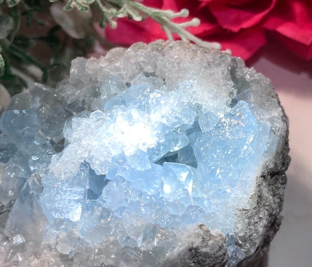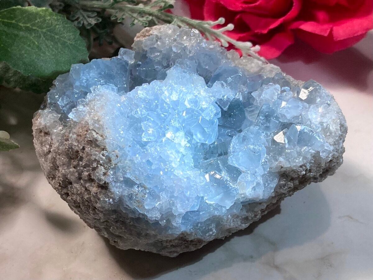 天使の石と謳われるセレスタイト原石で約8cmと存在感のあるクラスターです✨