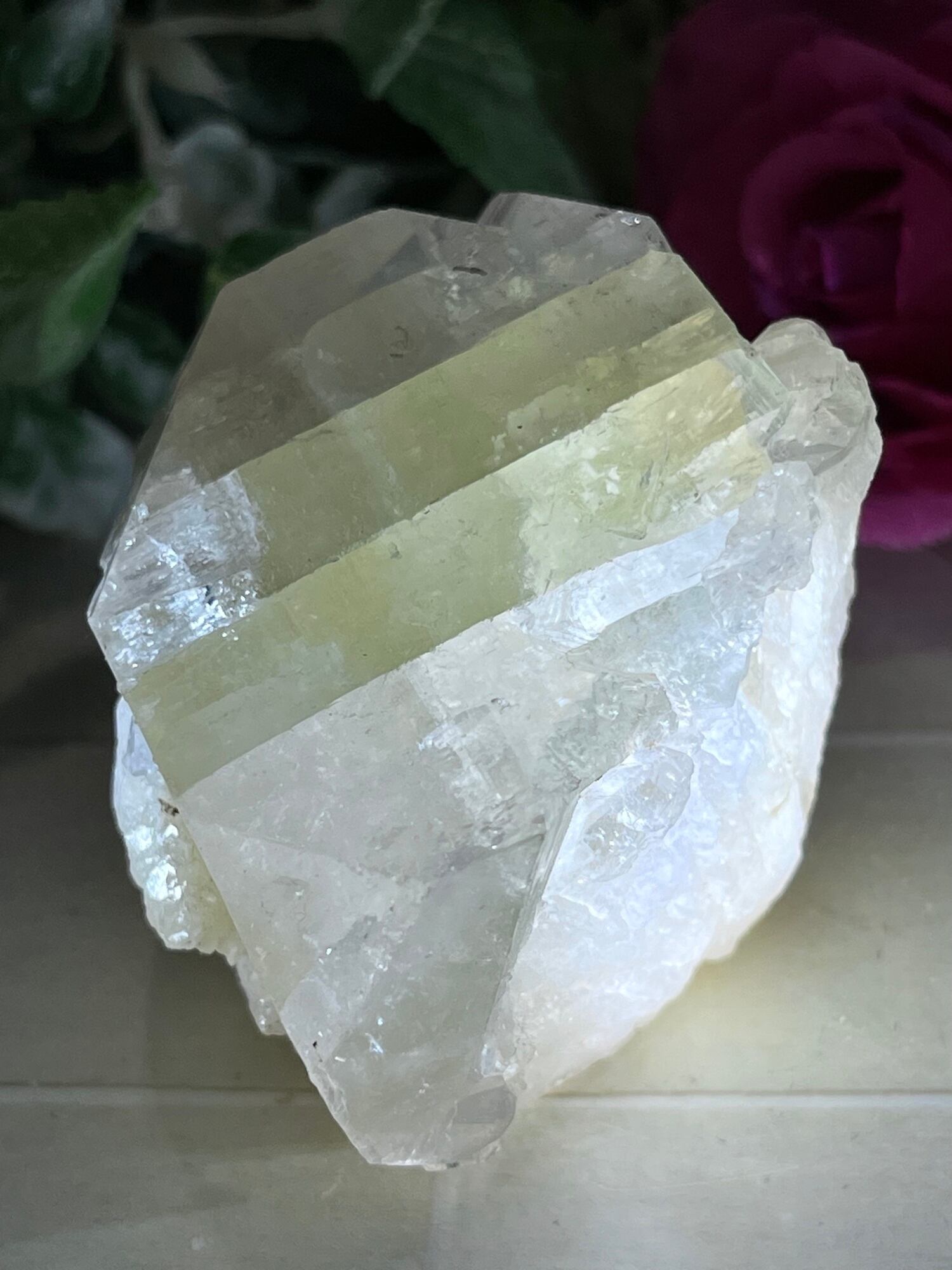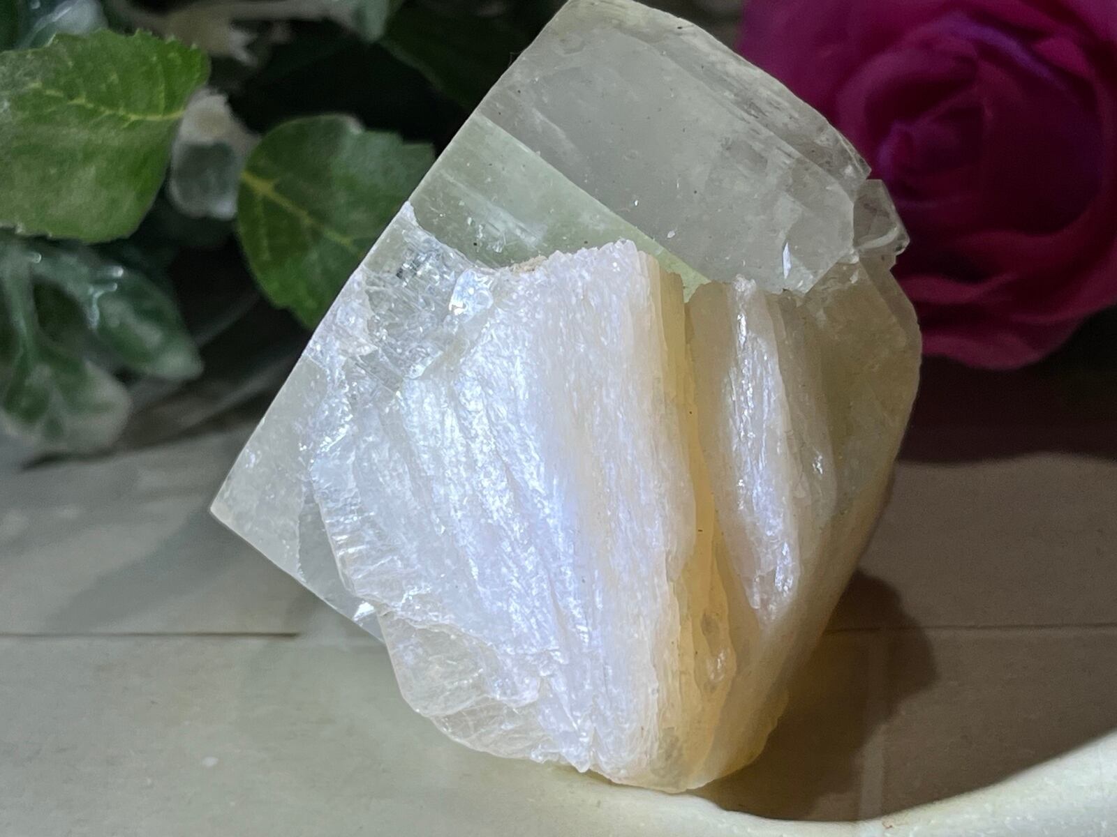 ライトを当てる角度によってアポフィライトに壮麗なレインボーが出ます✨