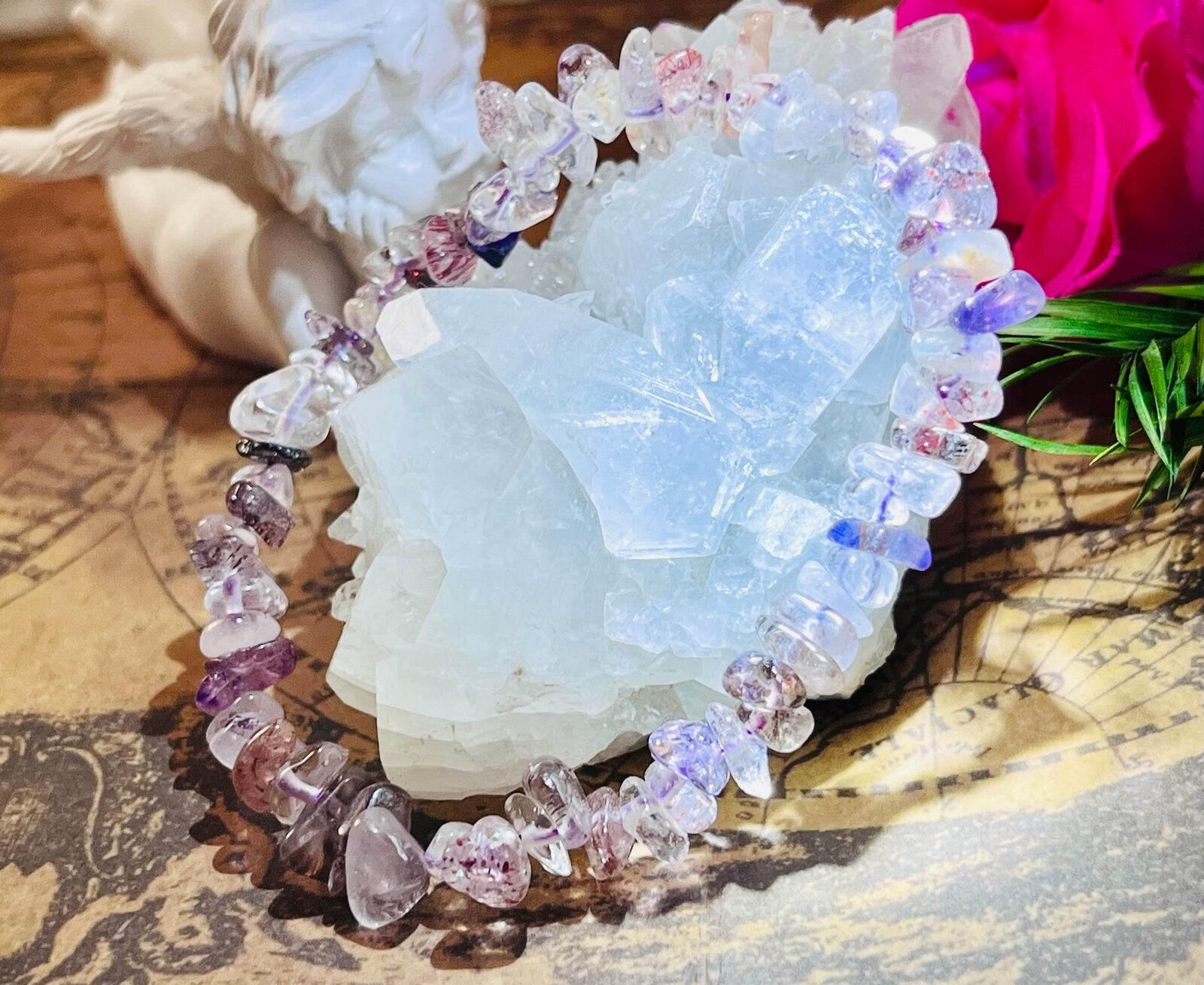 スーパーセブン✨ 細石ブレスレット アメジスト スモーキー クリスタル 原石