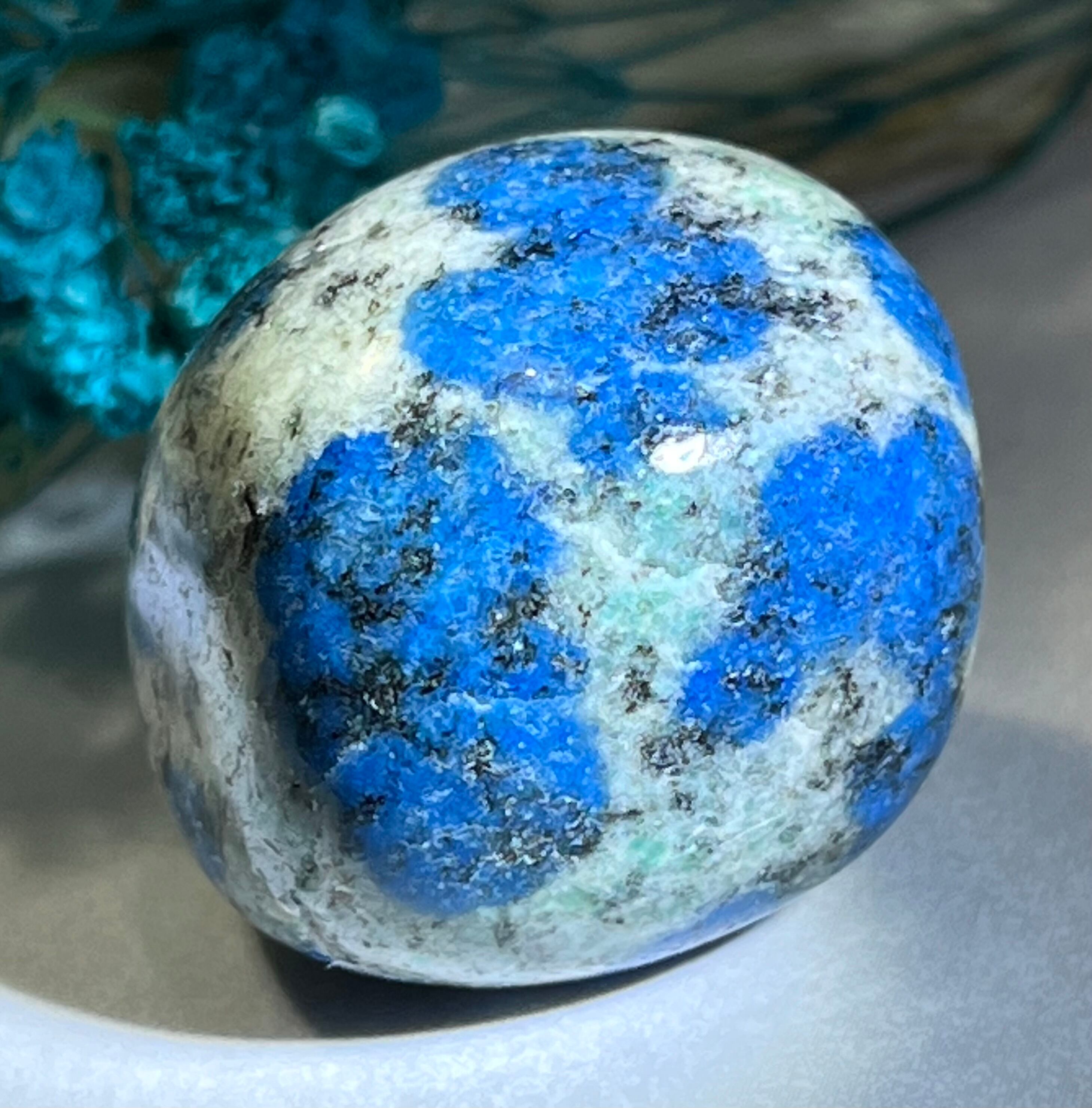 アズライトとグラナイトが共生し、美しいユニークな模様を作り出すK2ストーンのタンブルです✨