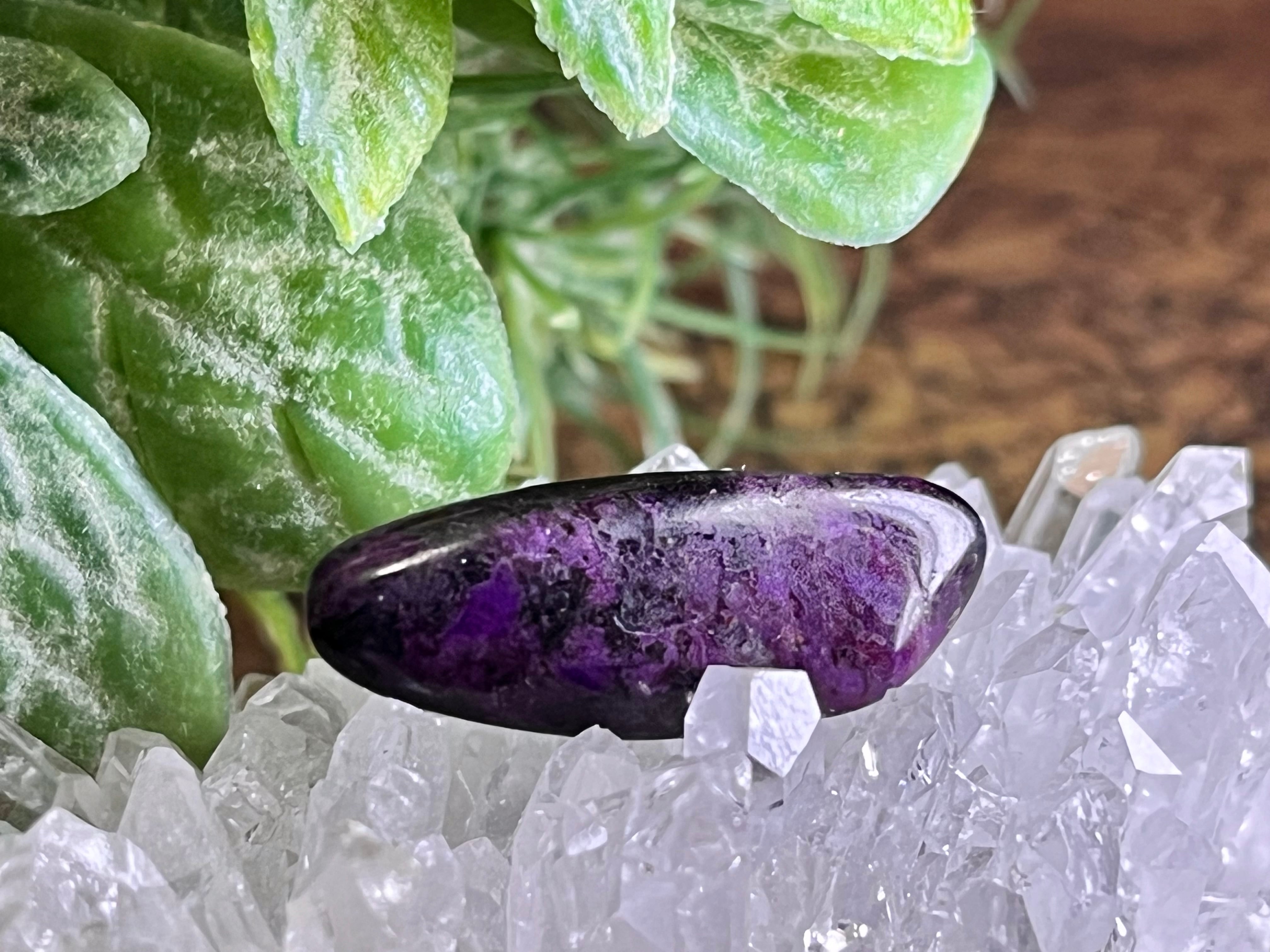 光を当てると鮮やかな紫色が現れるスギライトのタンブルです✨
