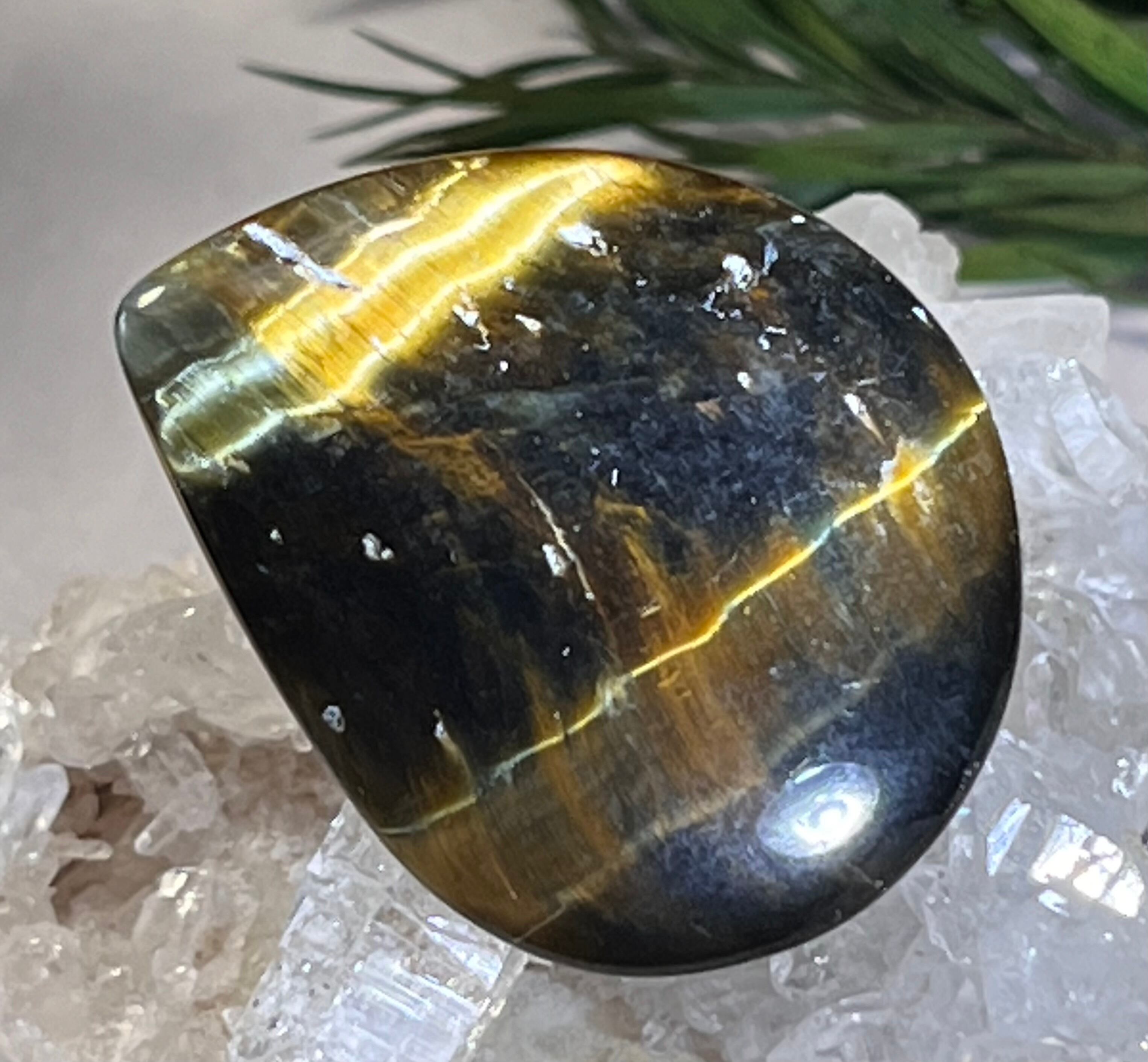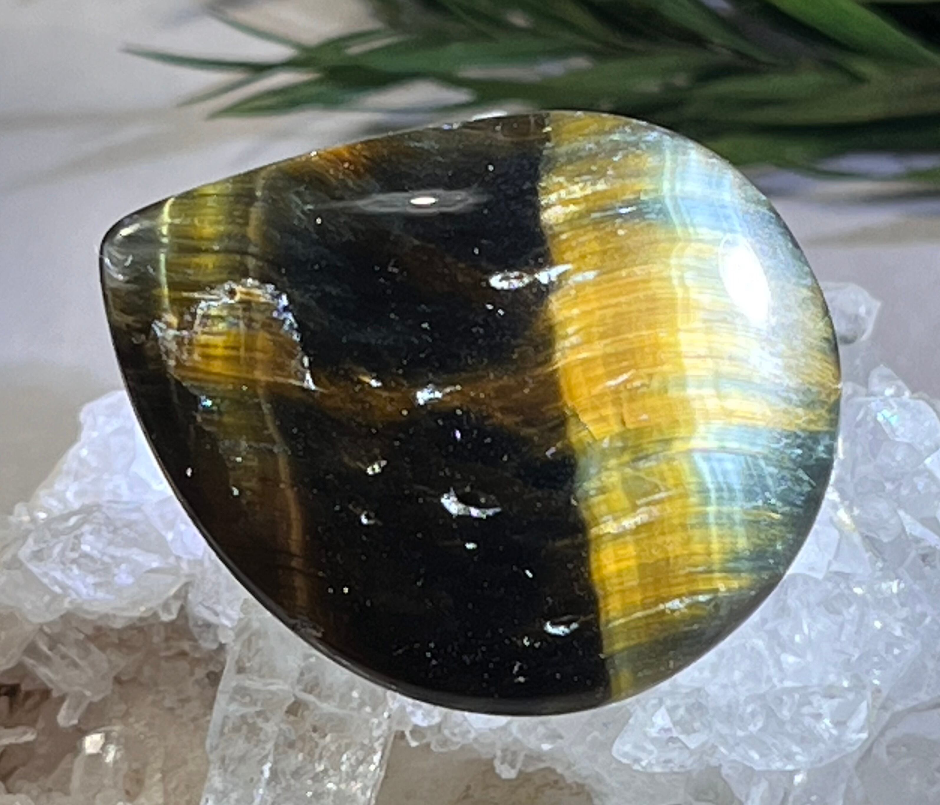 タイガーアイにあまり出回らないブルーのホークアイが混じりあったタイプのミックスタイガーアイ(混虎目石)のルースです✨