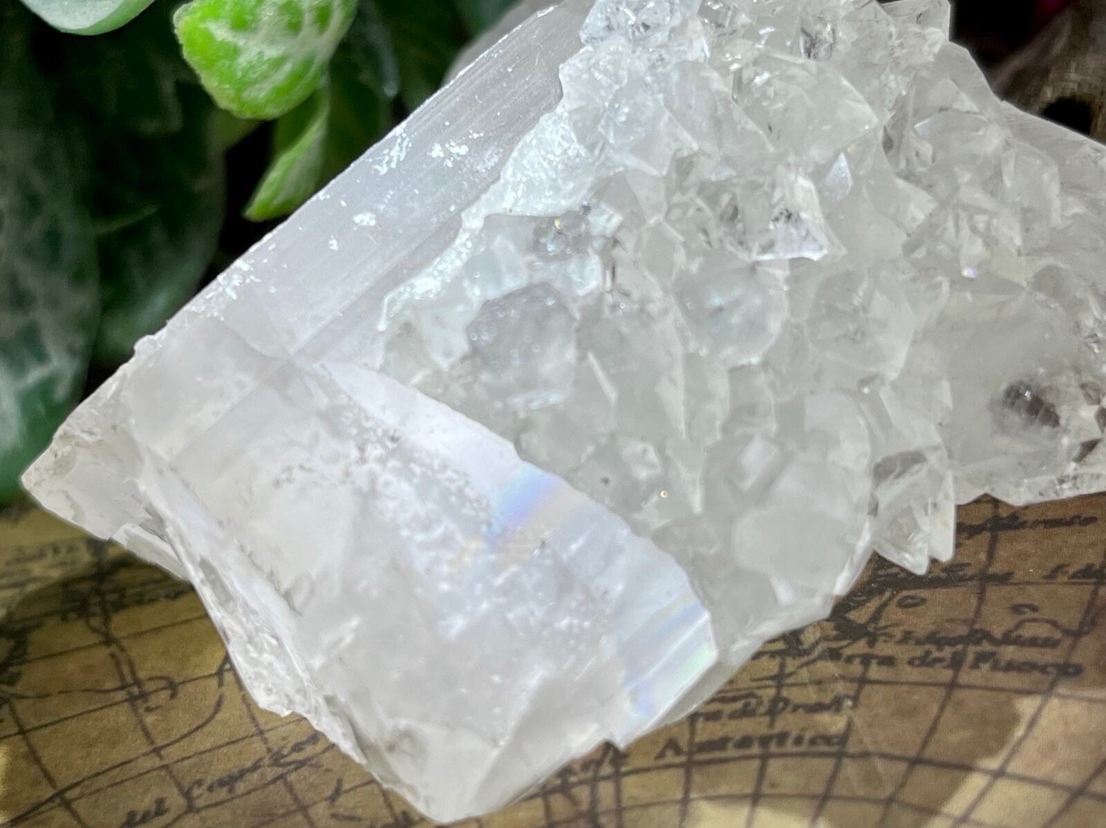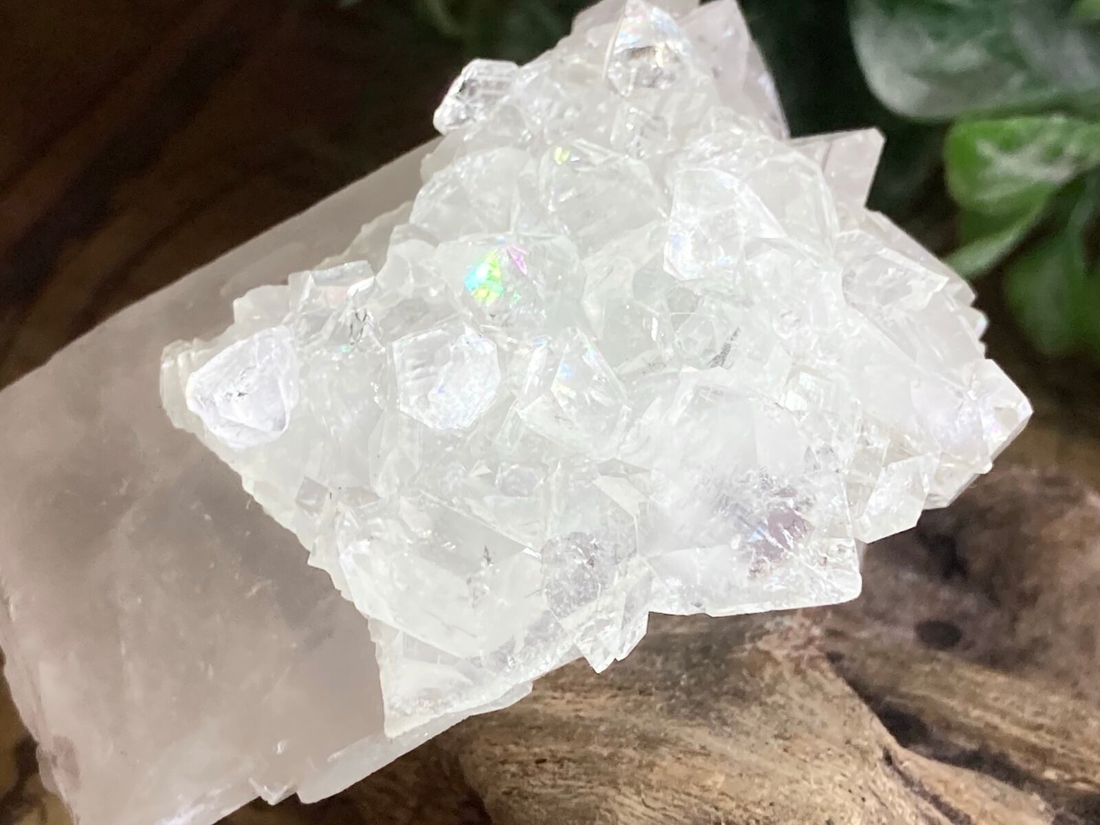 セレナイト共生✨ 天使の水晶 レインボー アポフィライト 原石 クラスター