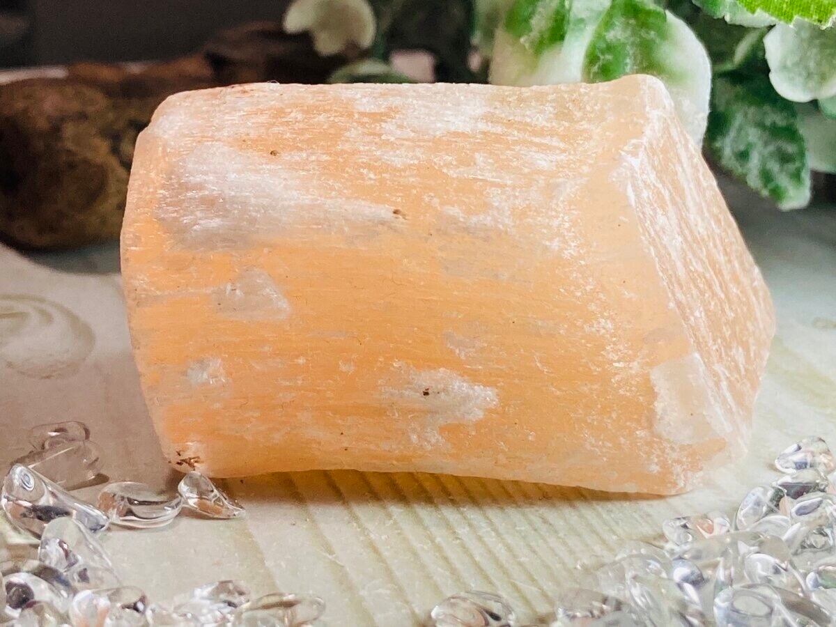 セレナイトはホワイトが有名ですがこちらは透明度はなく、薄い珊瑚朱色のシルキーセレナイトです❁⃘*.゜