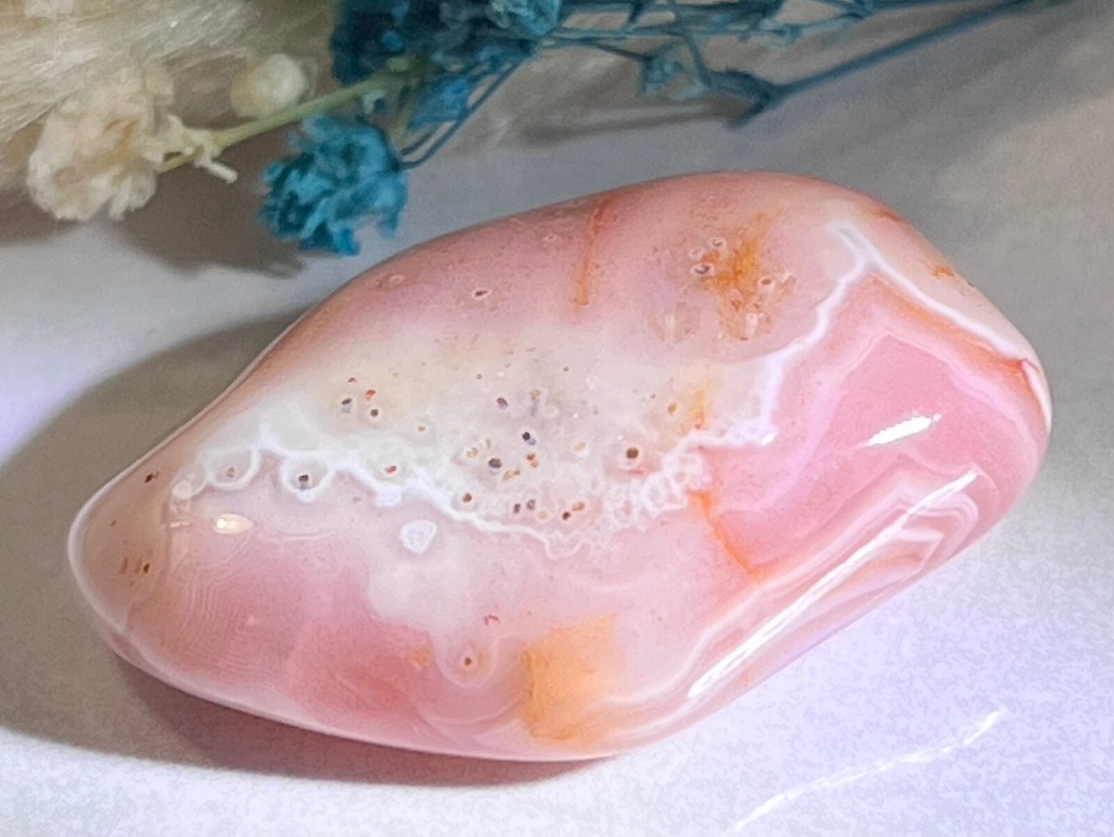 キャンディーのような可愛さのザンビア産のアプリコットアゲートタンブルです- ̗̀꒰ঌ໒꒱ ̖́-