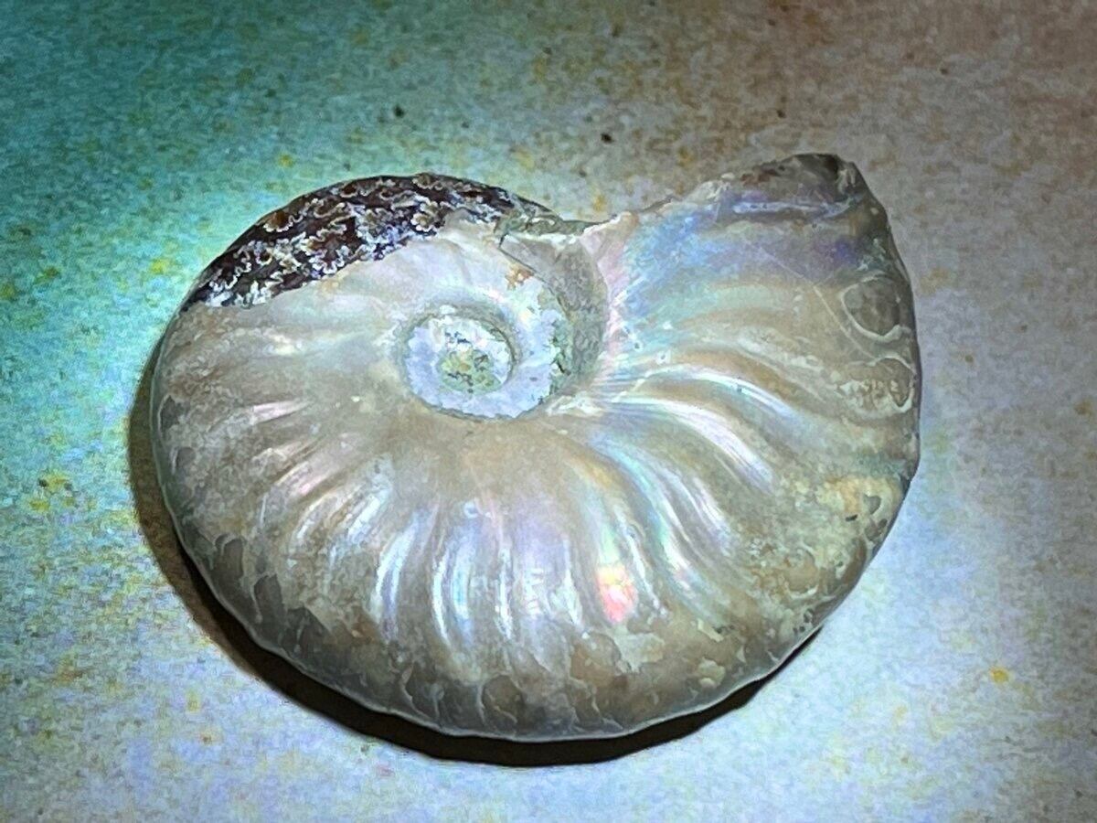 光を当てる角度によって美しい七色の虹が輝きを放つアンモナイトの化石です˚✧₊⁎