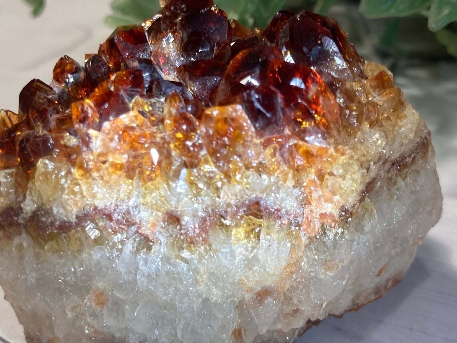 母岩が層になっていて栗色の結晶が特徴のシトリンクォーツクラスターです✨