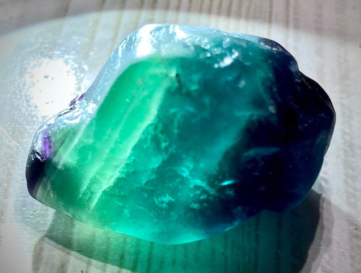エメラルドグリーンとブルー、パープルのグラデーションが美しい、フローライトマルチカラーラフストーンです❁⃘*.゜