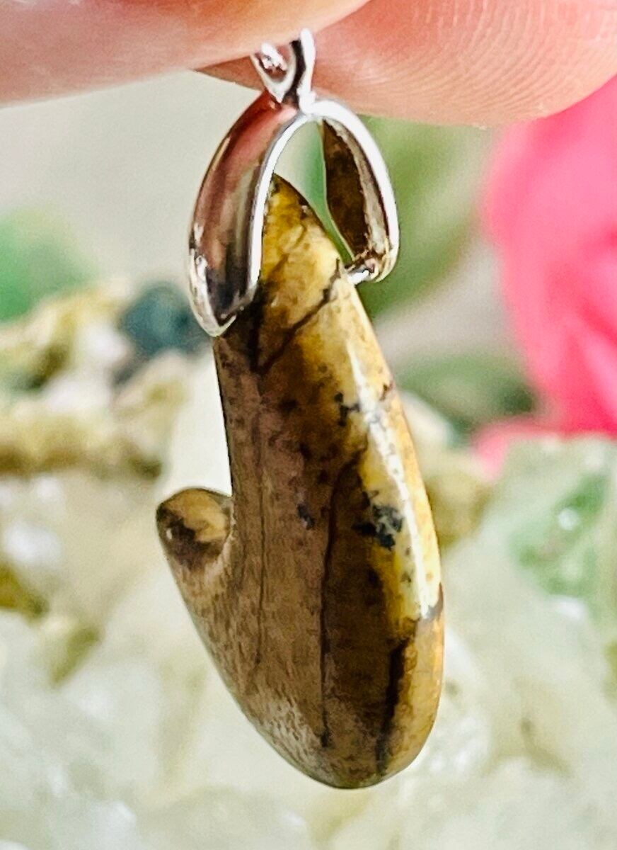 木目がペトリファイドウッド(珪化木)の月型ペンダントトップです✨