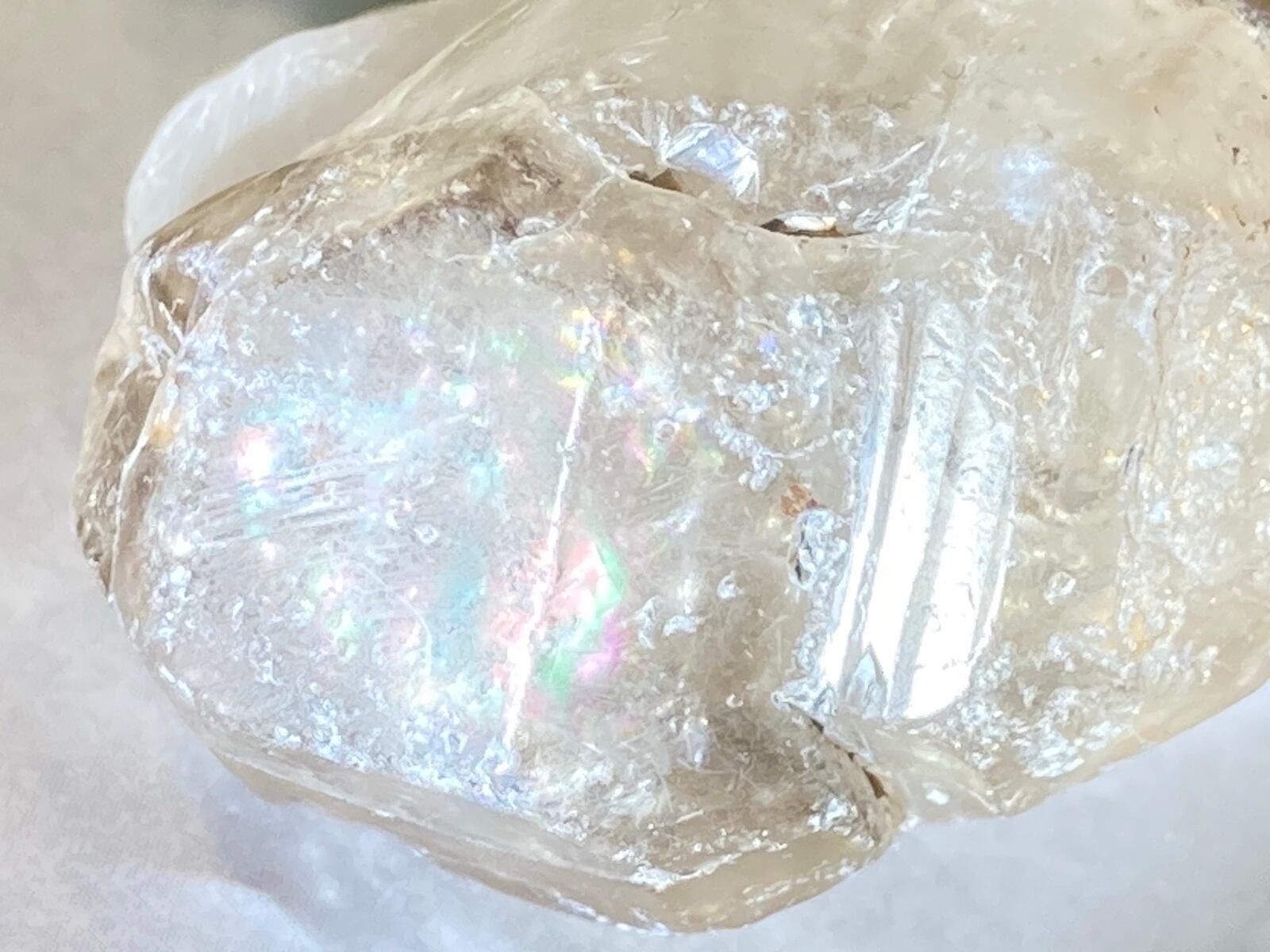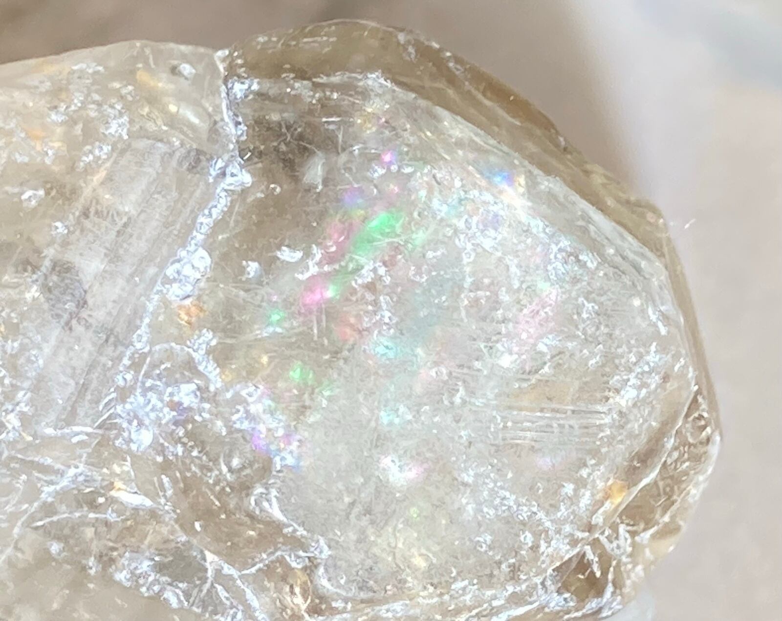 ライトを当てることで壮麗なレインボーが輝くスモーキーエレスチャルクォーツの原石です ໒꒱ ̖́-