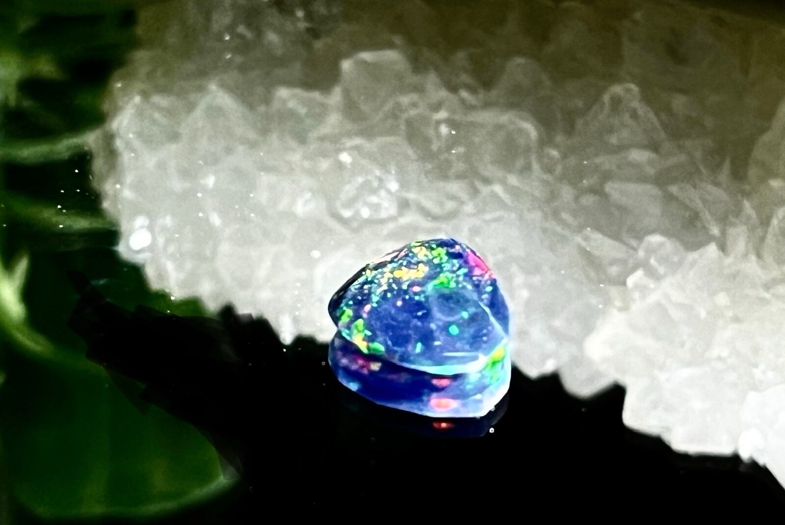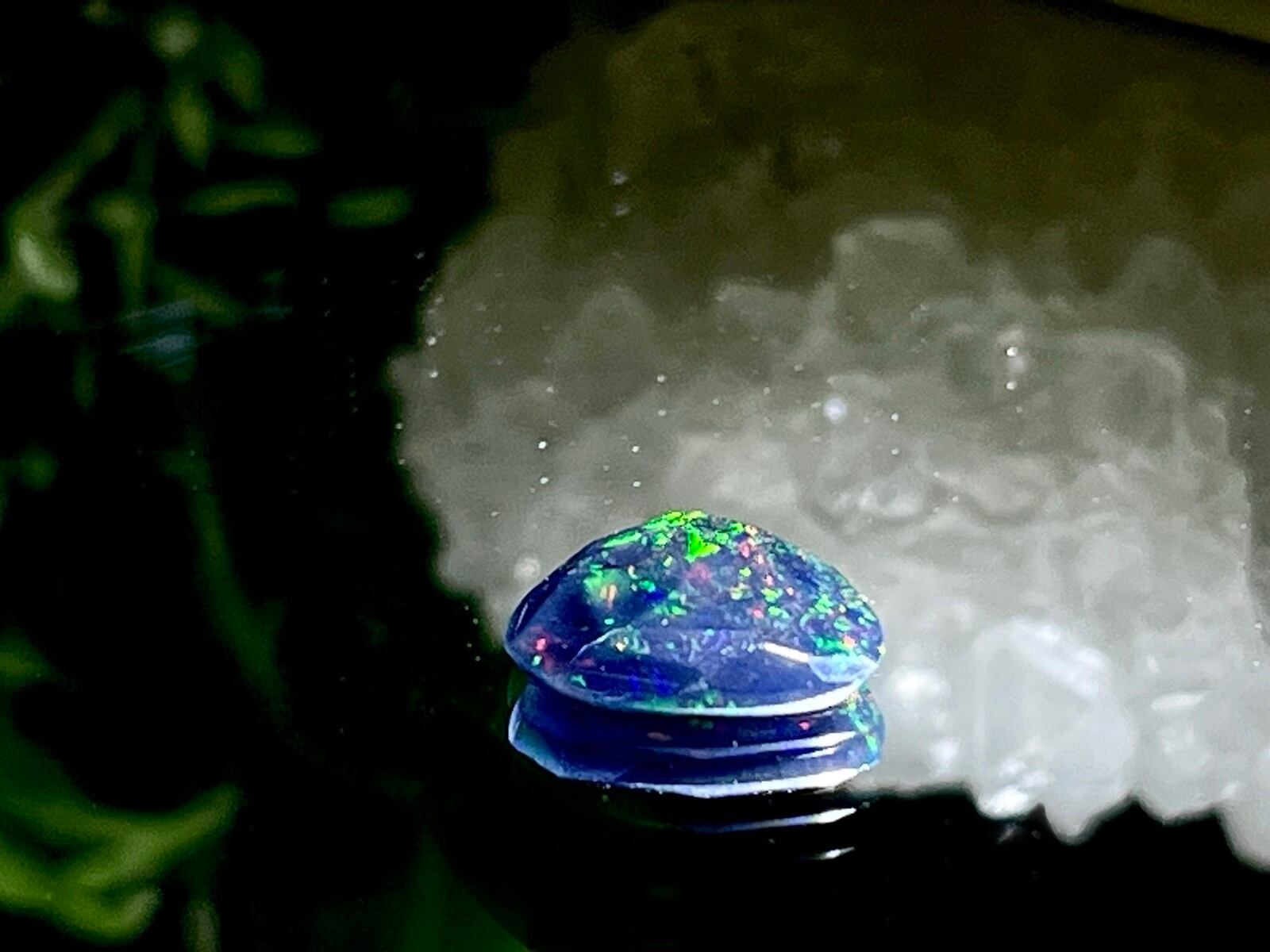 銀河系を切り取ったようなギラギラの遊色が眩しい、ブラックオパールのルースです✨