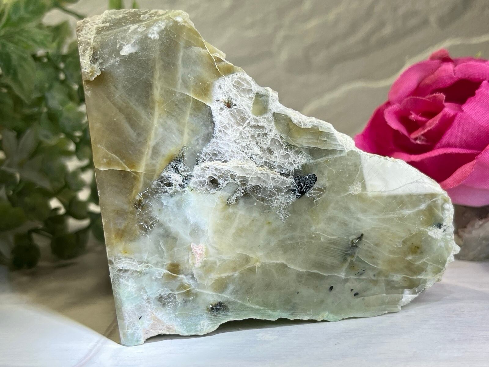 女性の幸福✨ グリーン ムーンストーン 原石 置物 磨き