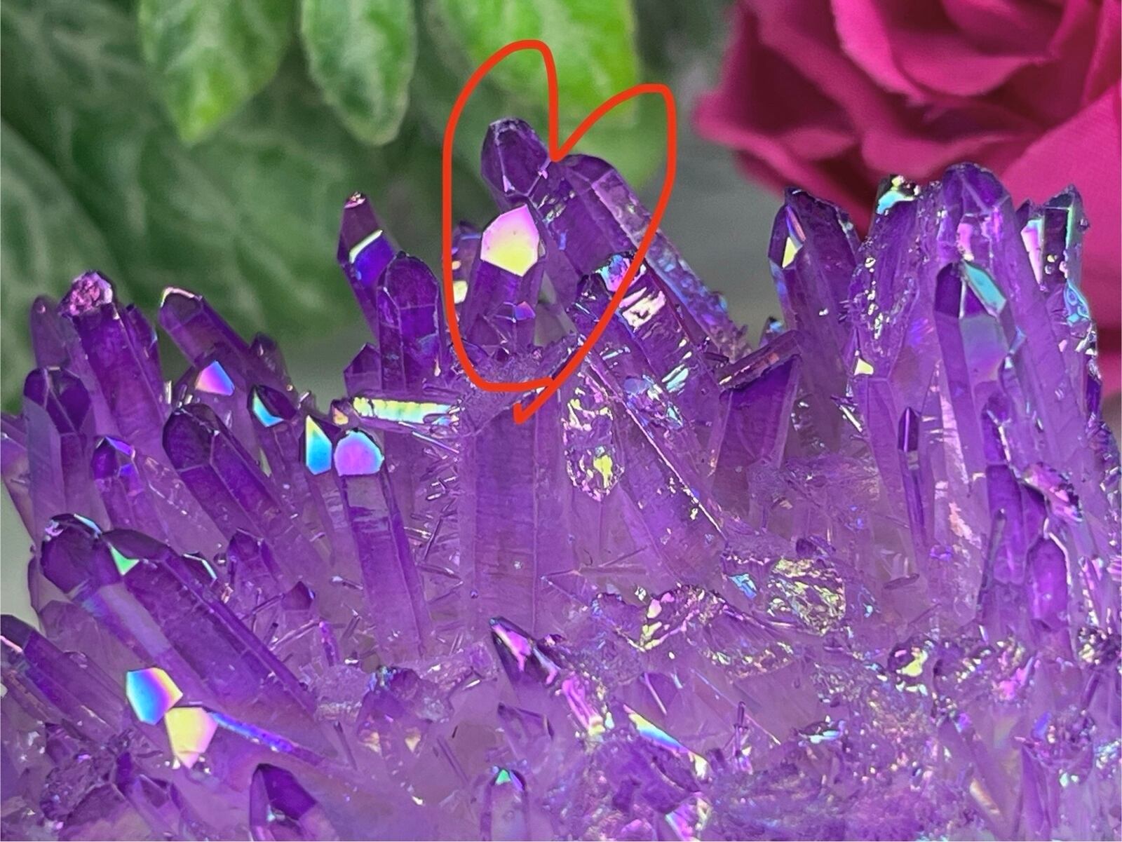 天然の水晶にイオン化した金属の蒸気を添加(蒸着)させた人工物になりますが、自然の物同士を錬金術的な組み合わせという事で、本来の水晶のパワーに上乗せし強化させてあると思われているようで、海外のヒーラーに好まれている石でもあります。