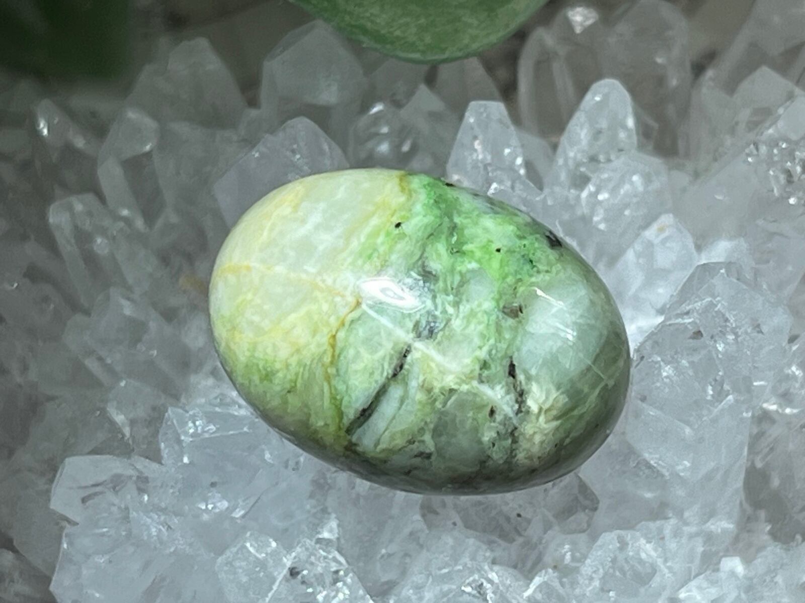 蓬色と若菜色のマーブル模様の日高翡翠ルースです❁⃘*.゜