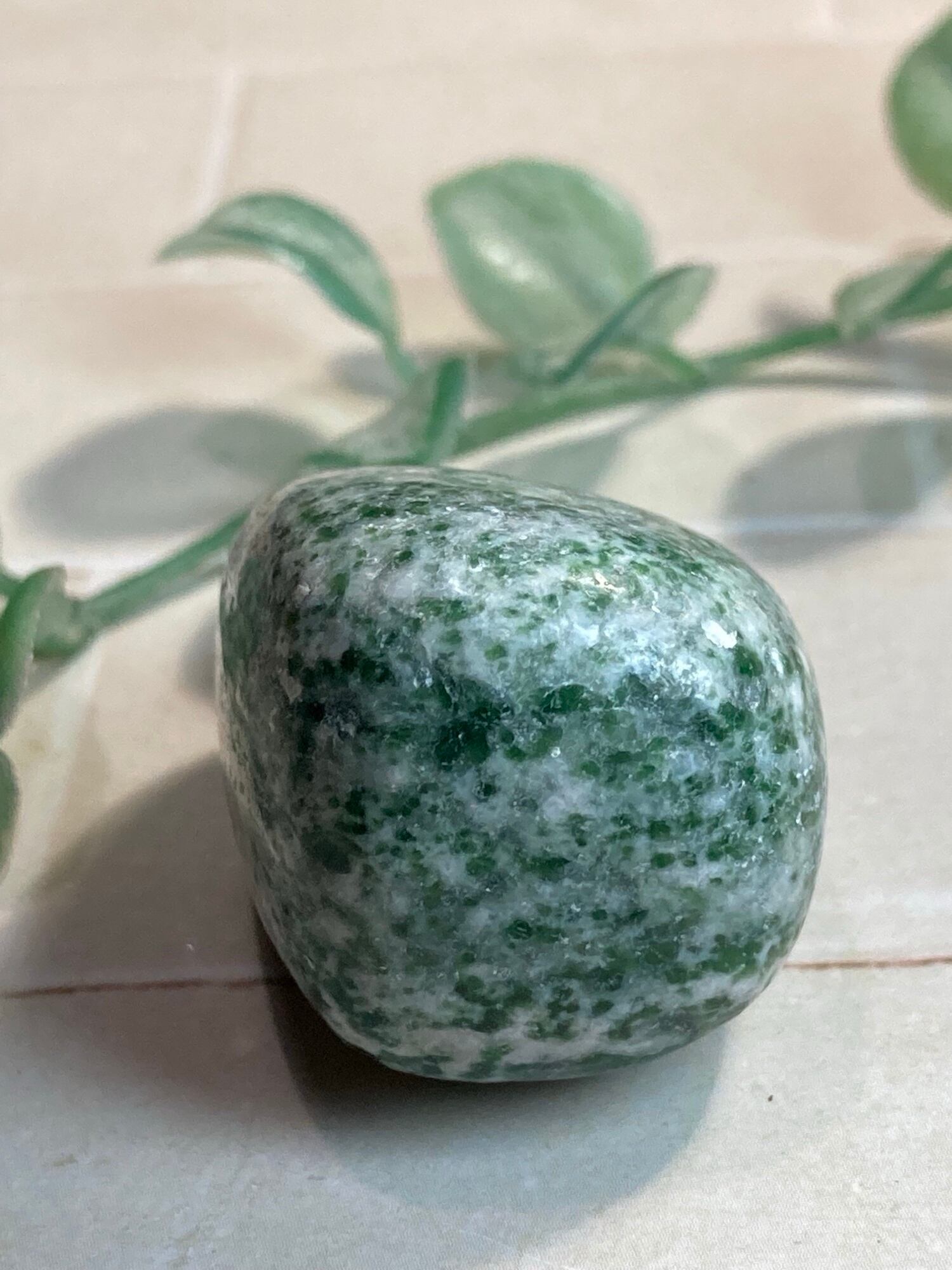落ち着いたモスグリーンのインド産ツリーアゲートタンブルです✨