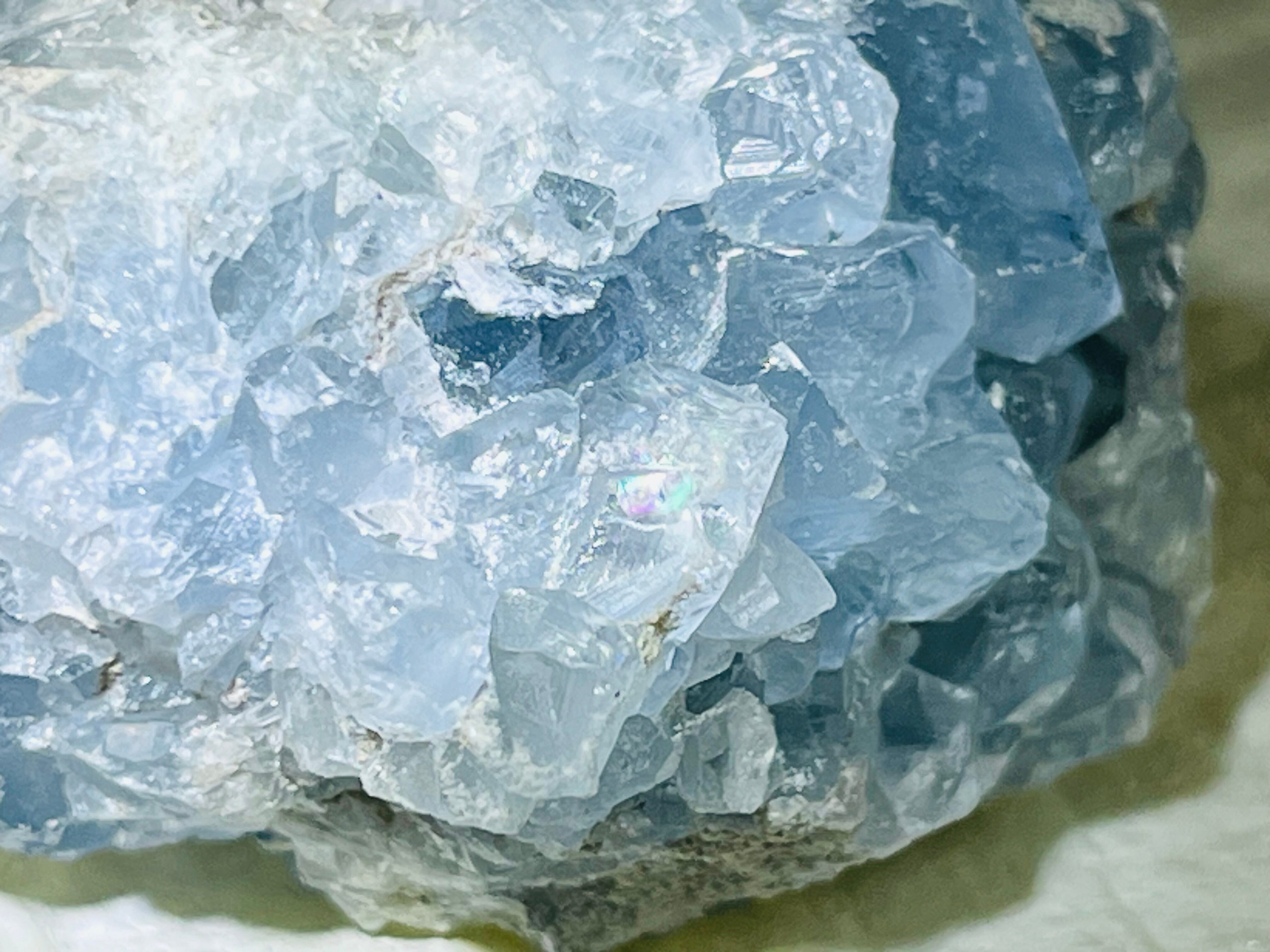 ※セレスタイトは硬度が3.5と柔らかい上に「劈開(へきかい)」が非常に強い石です。