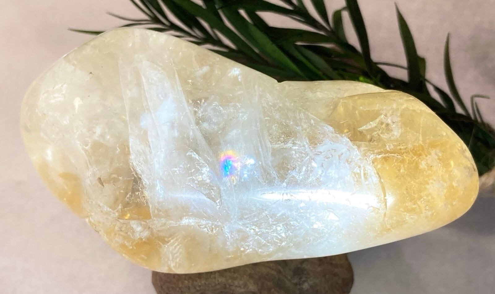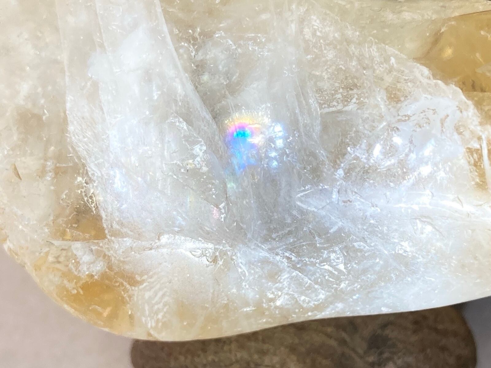 綺麗なレインボー効果が至るところに現れるシトリンクォーツのタンブルです✨