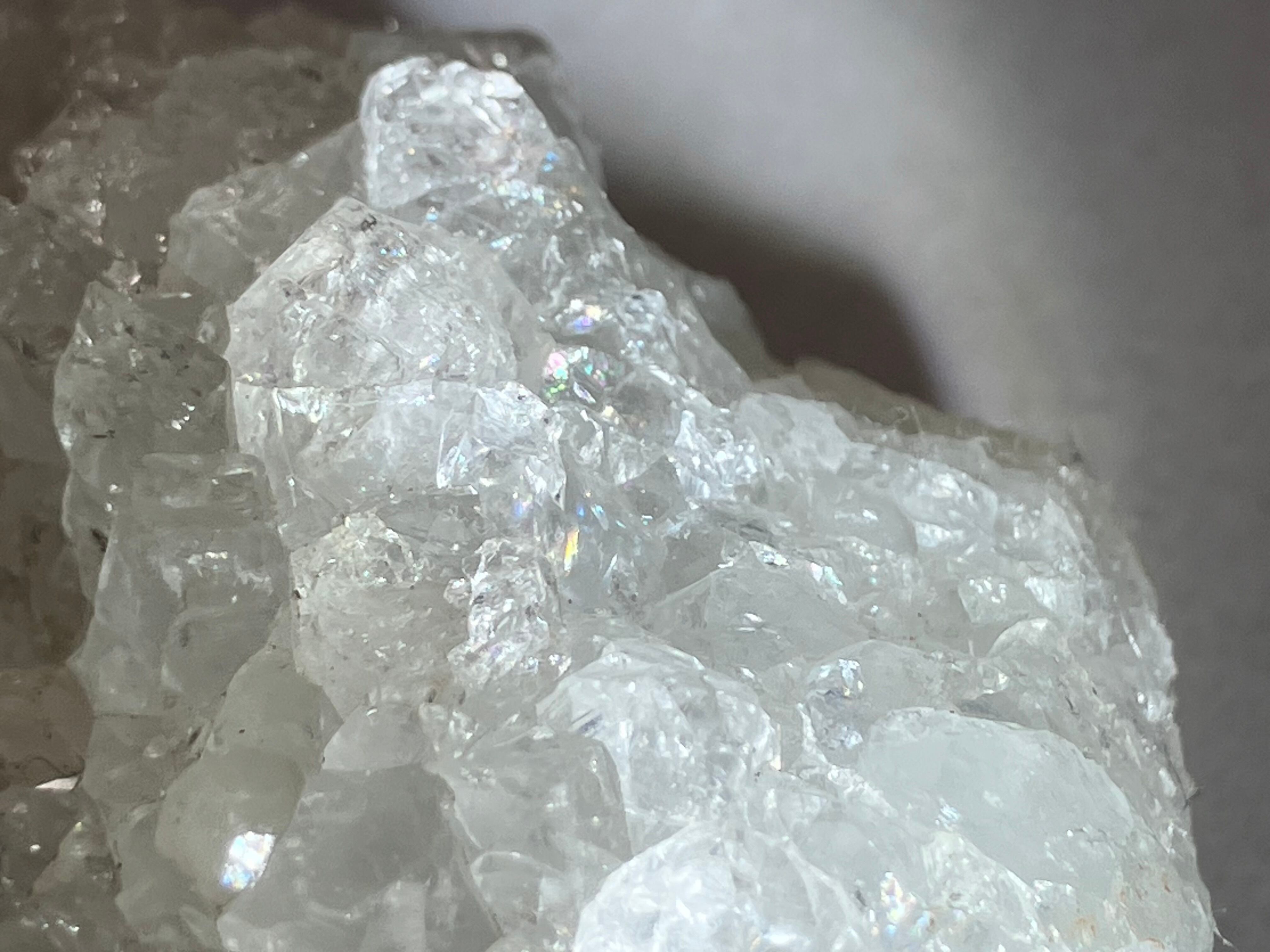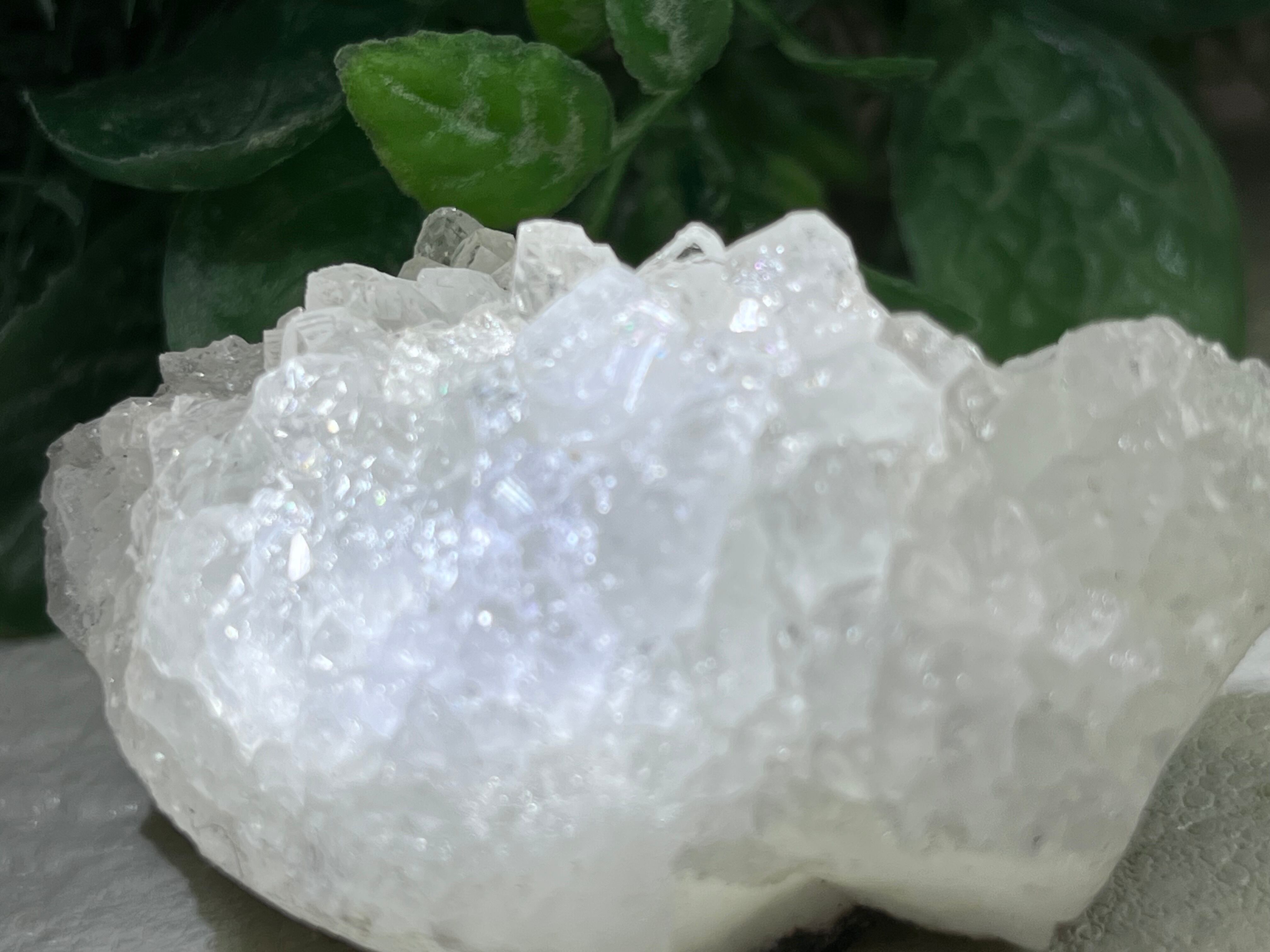 ライトを当てる角度によって結晶に綺麗なレインボーが輝くアポフィライトのクラスターです- ̗̀꒰ঌ໒꒱ ̖́-