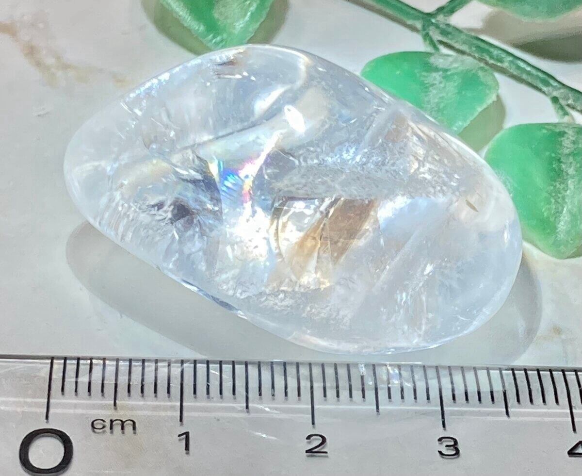 壮麗な虹が輝くレインボークォーツのタンブルです。