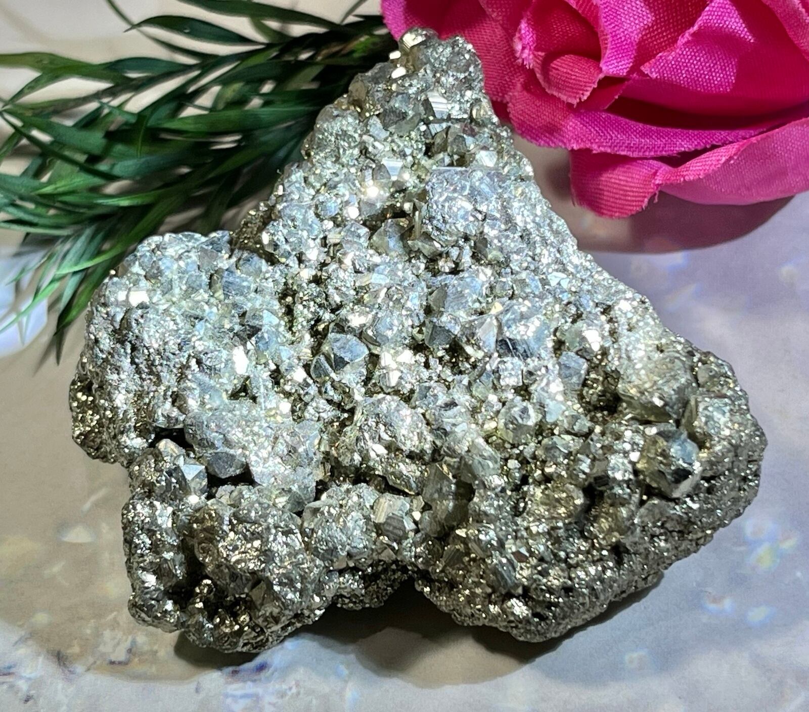 このようにパイライトは形にも意味があり、綺麗なキューブは安定力がとても強く、心身のバランスをとるのに有用です。
