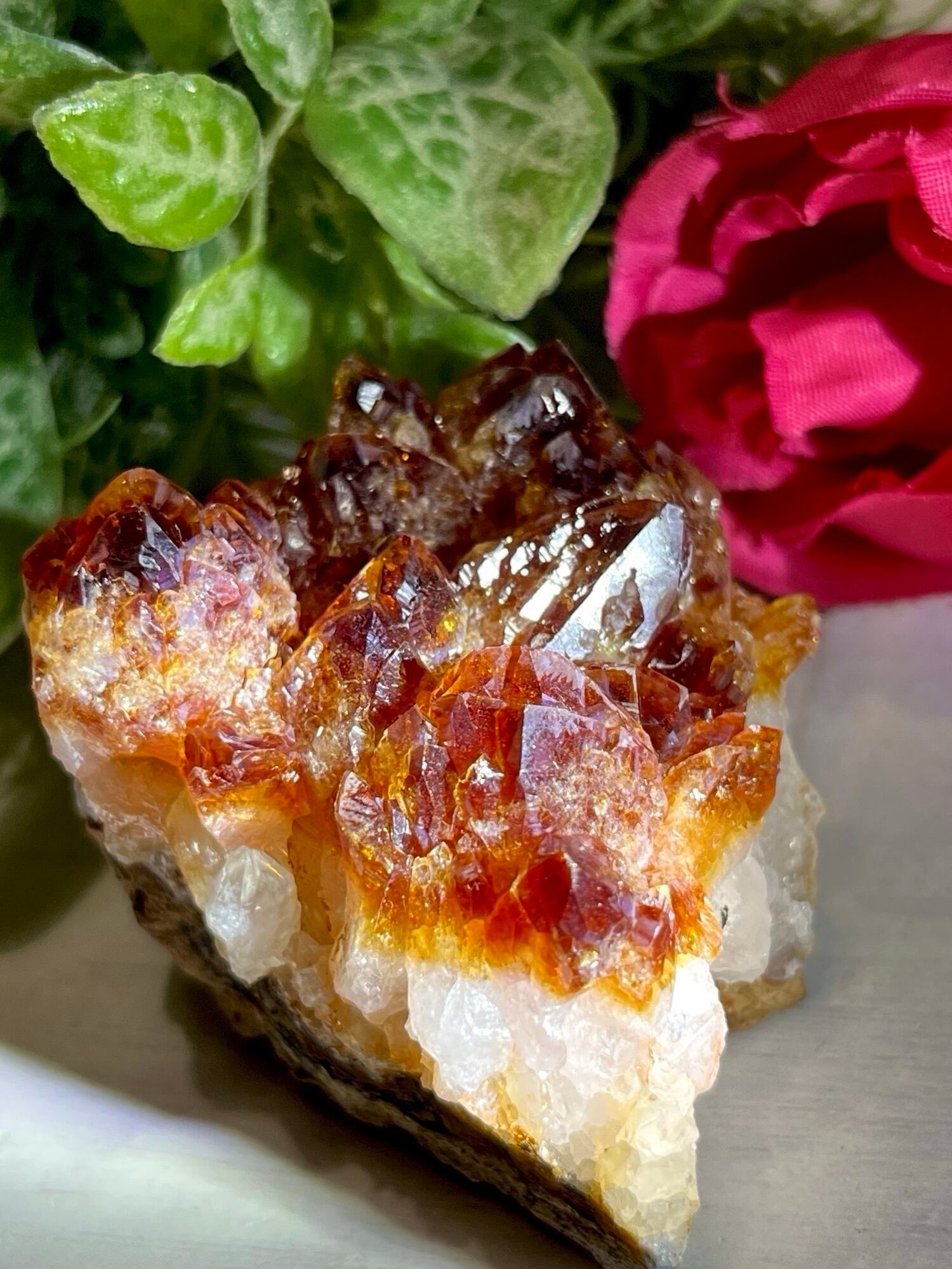 ウィスキーカラーの結晶が小洒落た成長干渉水晶(グロース・インターフェレンスクォーツ)のシトリンクォーツクラスターです❁⃘*.゜