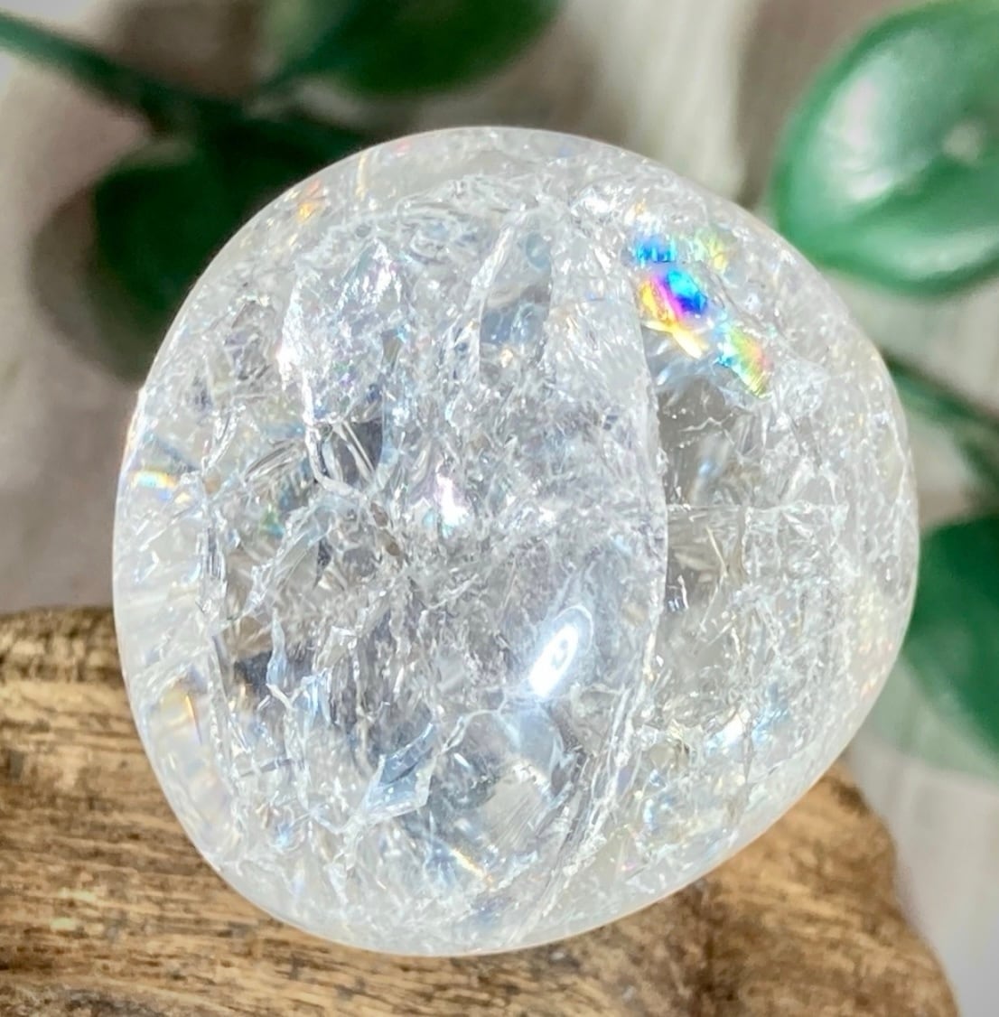 レインボーがあちこちで輝くクラック水晶のタンブルです✨