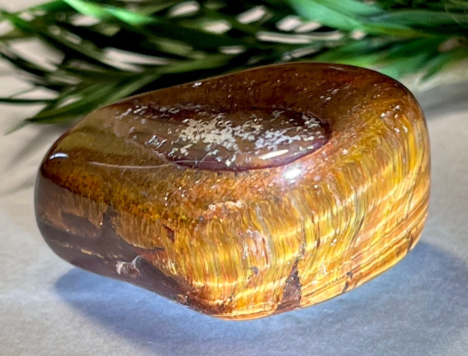 緋色がかった虎目のシラーが美しいレッドタイガーアイのタンブルです✨